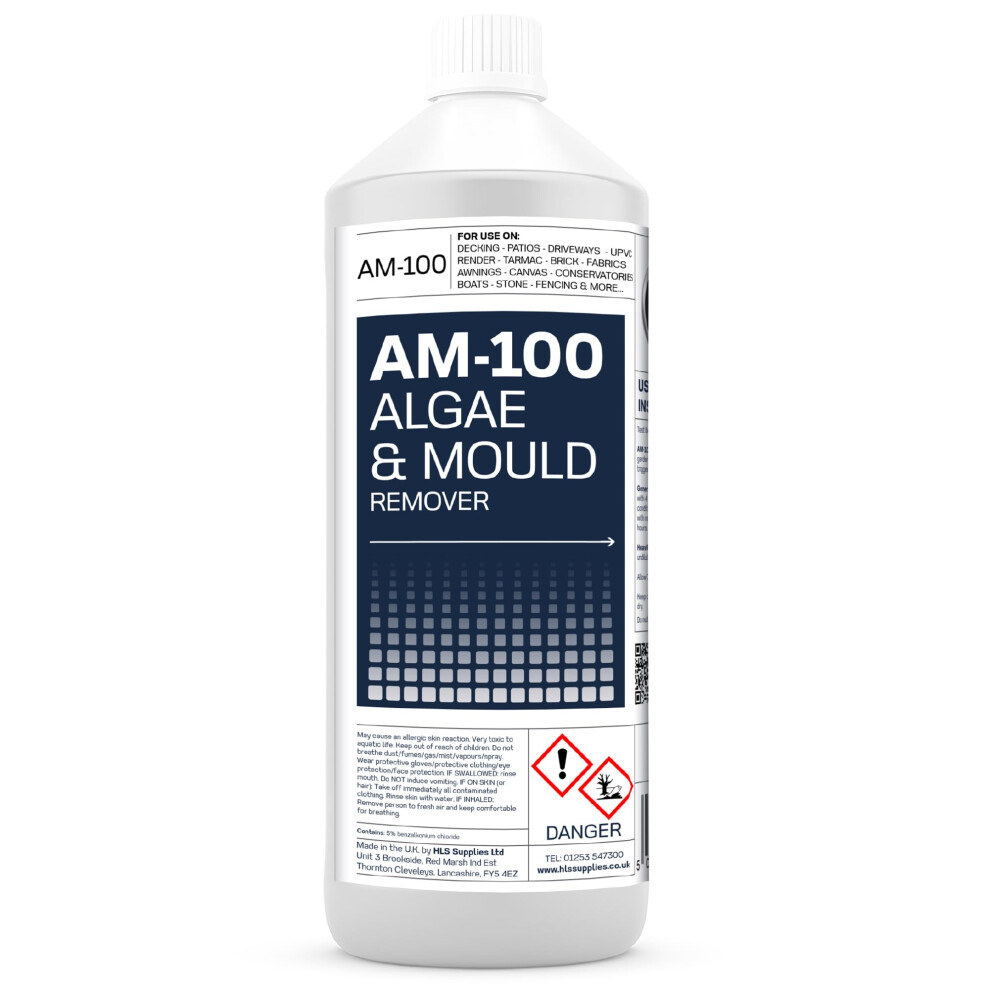 HLS Supplies 1L AM-100 Algae and Mould Remover Patio - Spray & Leave Fence, Deck and Render Cleaner Pet Friendly Once Dry
