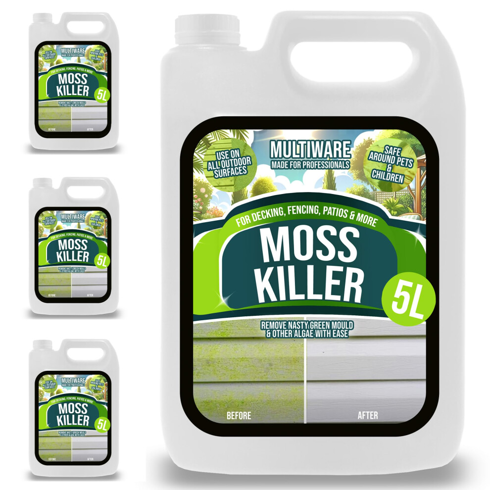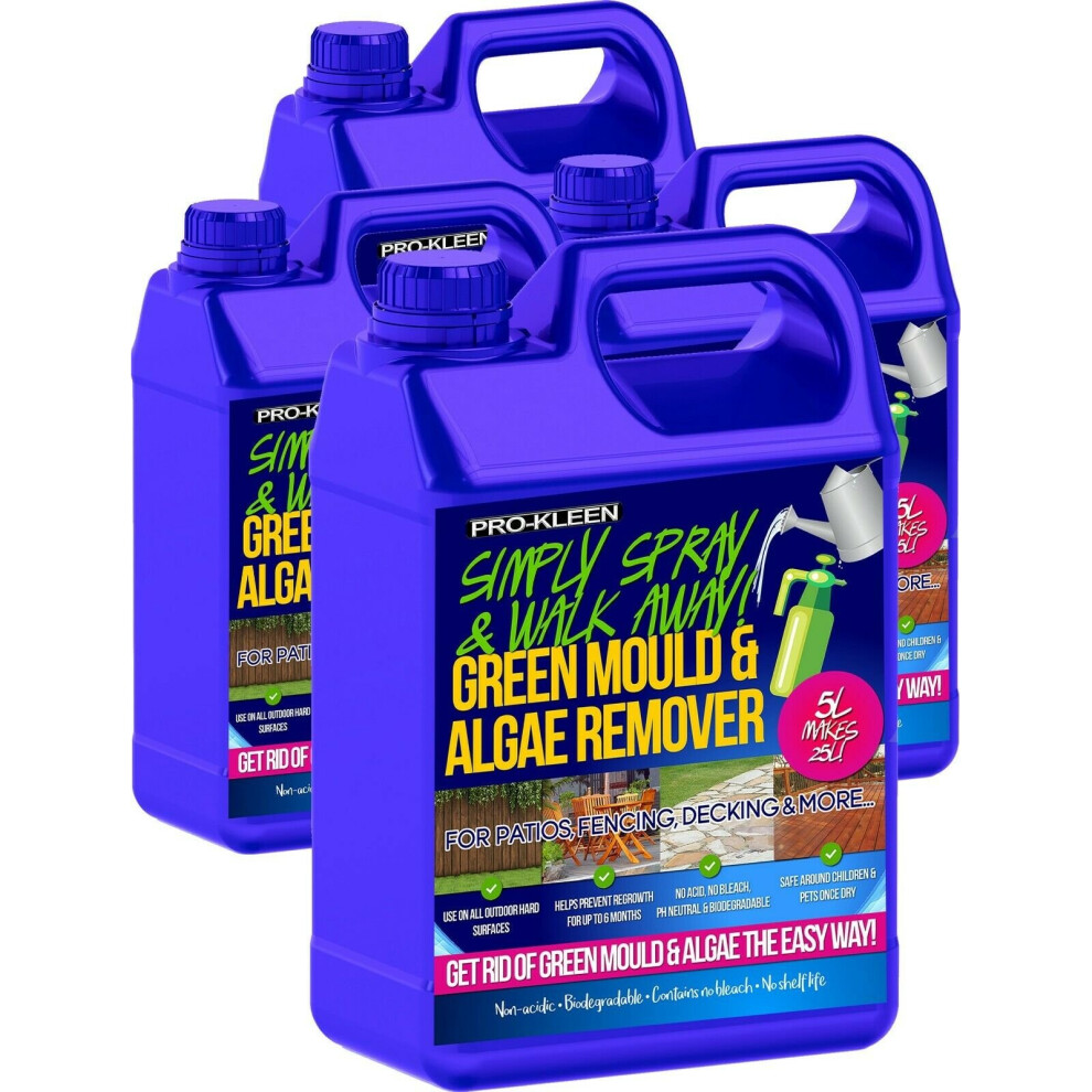 Jarder Spray & Leave 4 x 5 Litre Concentrate Cleaner - Patio Fencing Decking - Green Mould & Algae Killer (20L)