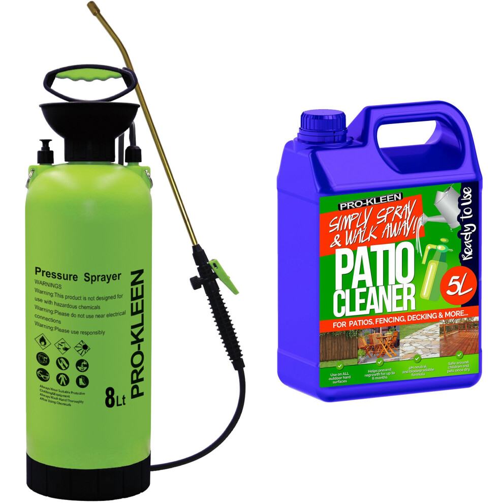 (8L, ProKleen Ready to Use Simply Spray & Walk Away Patio Cleaner 1 x 5L ) Garden Sprayer Pump Action Patio Cleaner Kits