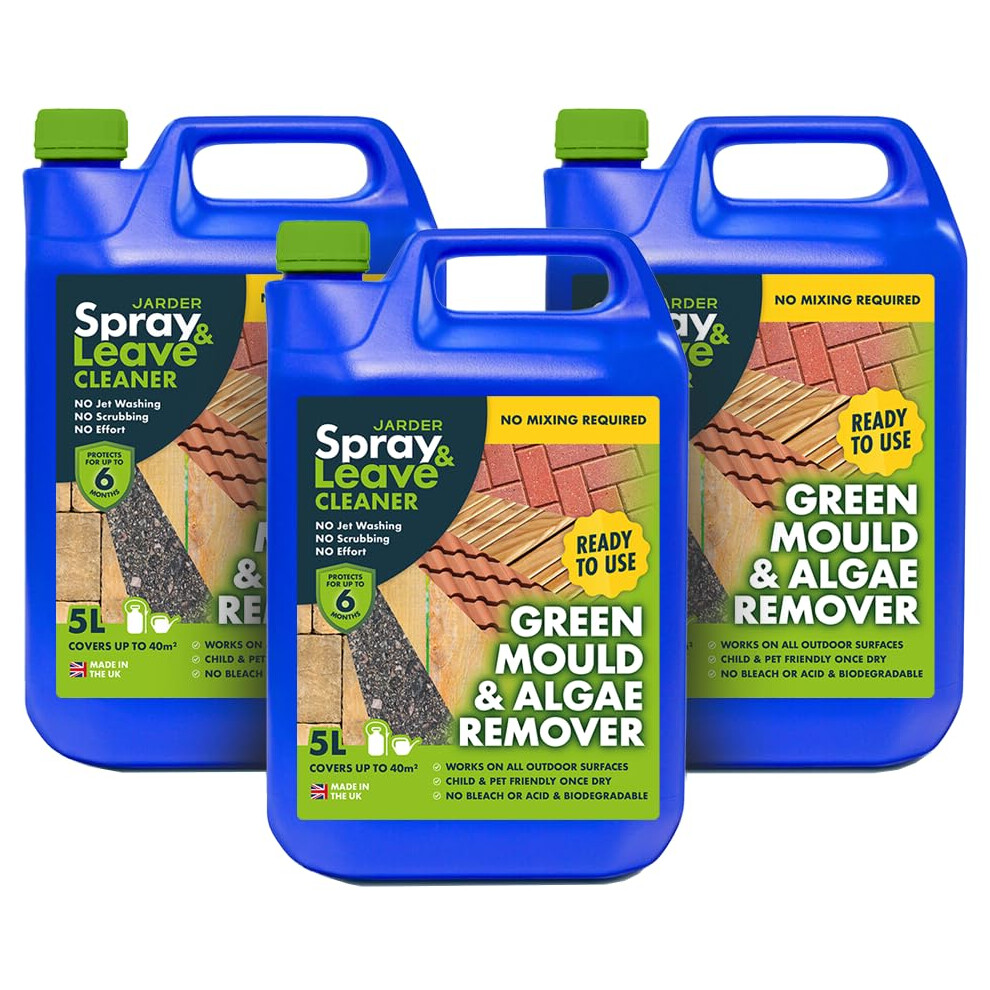 3 x 5 Litres Jarder Spray & Leave Ready to Use Patio Cleaner - Removes Green Mould and Algae. No Mixing Required - Covers 120 Square Metres.