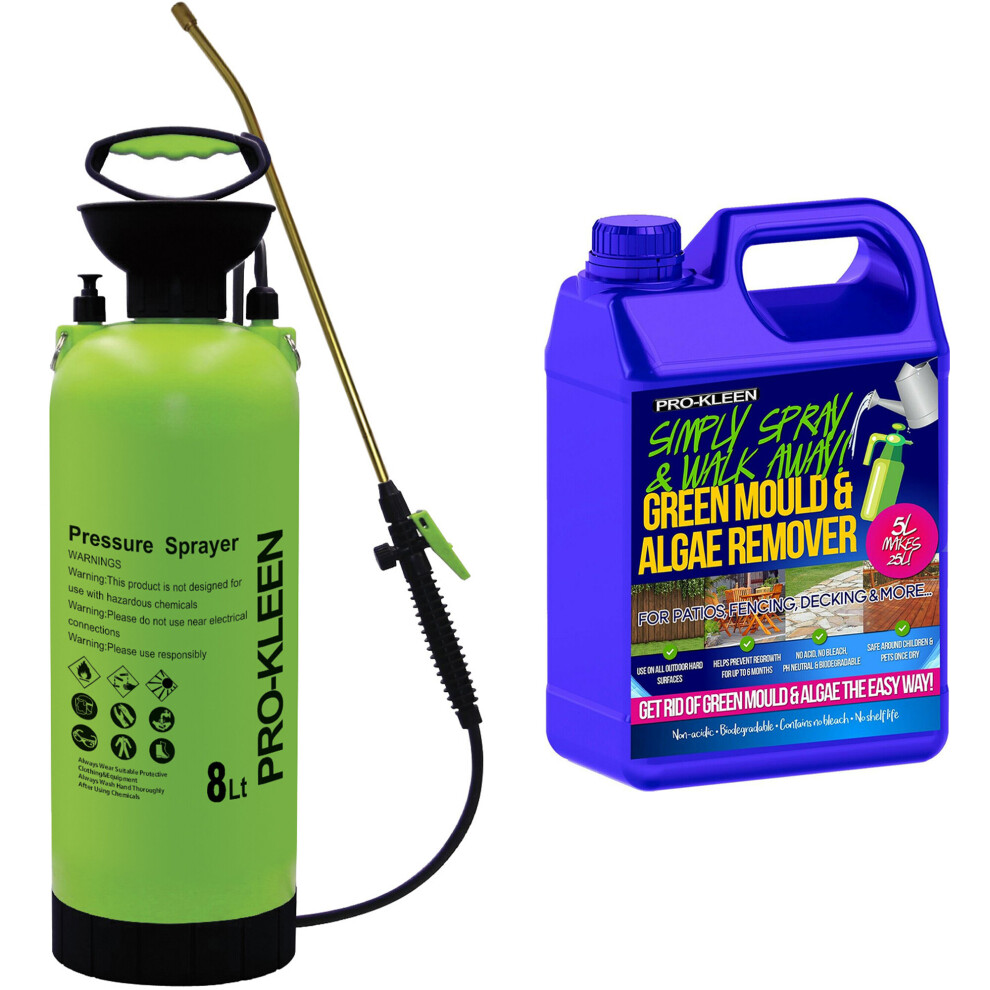 (8L, ProKleen Simply Spray & Walk Away Patio Cleaner 1 x 5L) Garden Sprayer Pump Action Patio Cleaner Kits