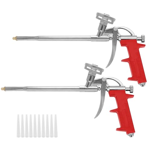 Preciva Foam Gun, 2pcs Red and Orange Expanding Foaming Guns, Professional Heavy Duty PU Foaming Tool Foam Filler Tools, Insulation Spray Applicator Polyurethane CaulkingGun for Filling, Sealing