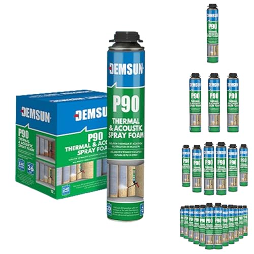 Demsun P90 Thermal & Acoustic Spray Foam – 12 x 850ml Can | Expanding Polyurethane Insulation Foam for Heat & Soundproofing | Easy to Apply, Strong Adhesion for Walls, Roofs, Floors (12)