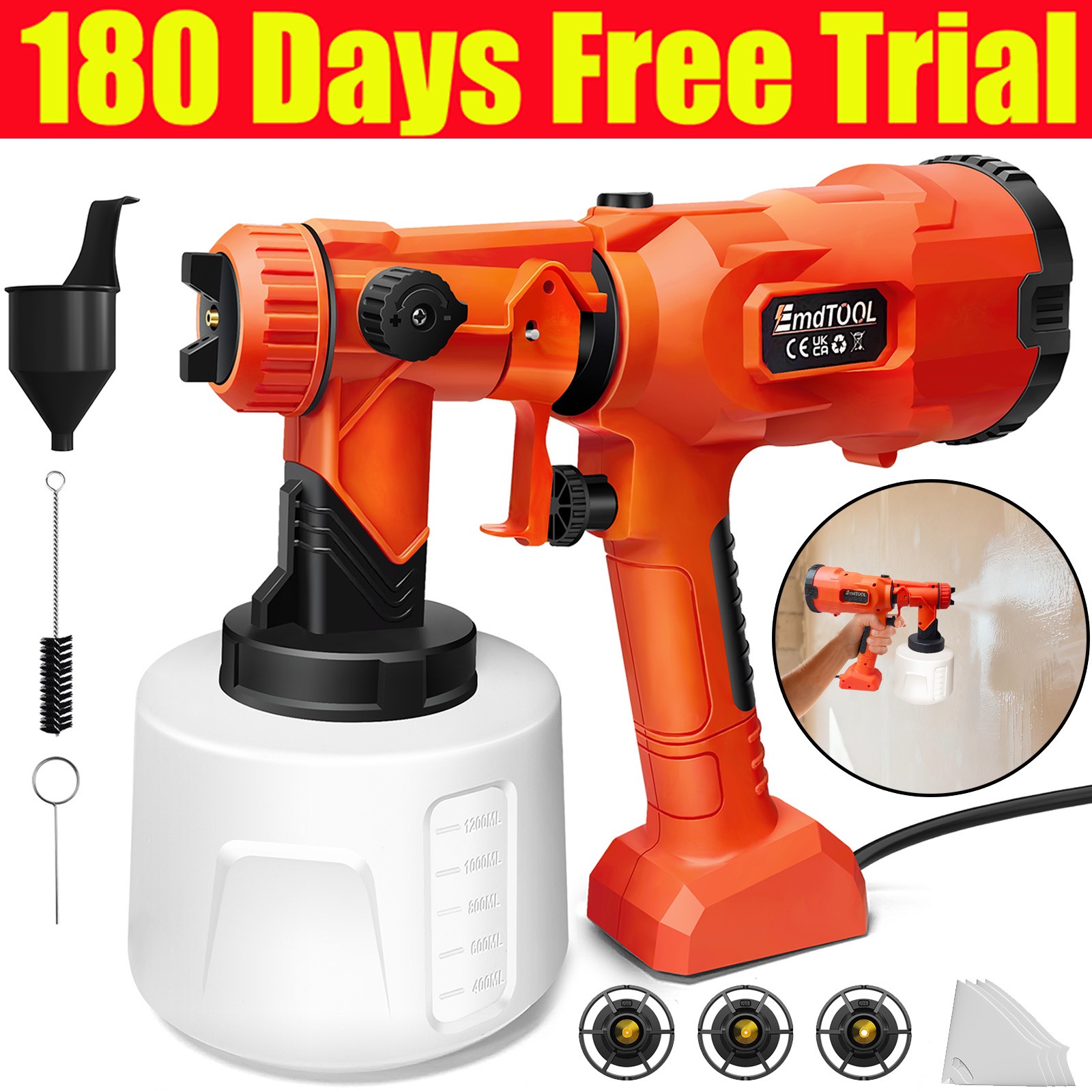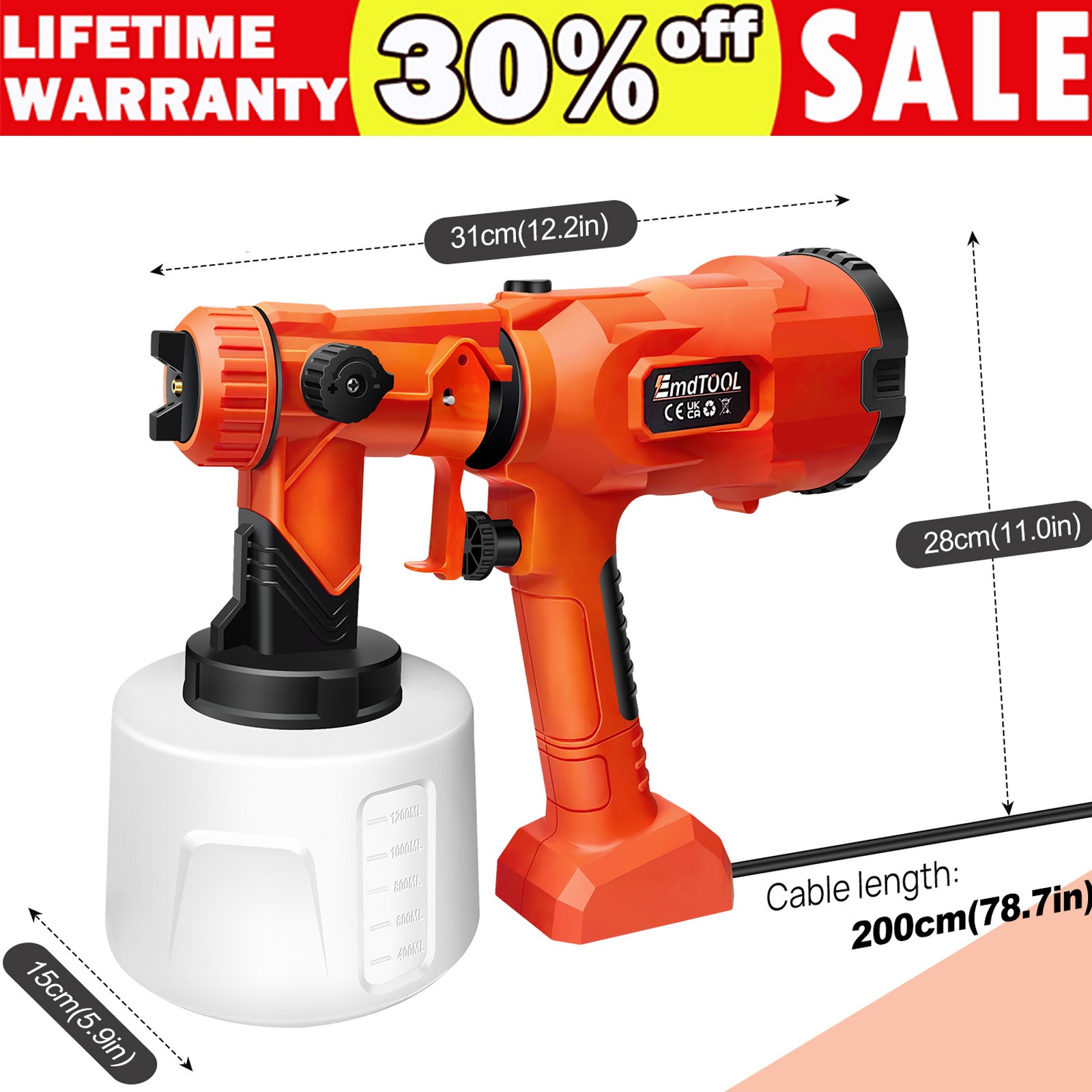 PAINT SPRAYER SPRAY GUN AIRLESS HVLP ELECTRIC 1000ML SPRAY GUN HAND HELD FENCE