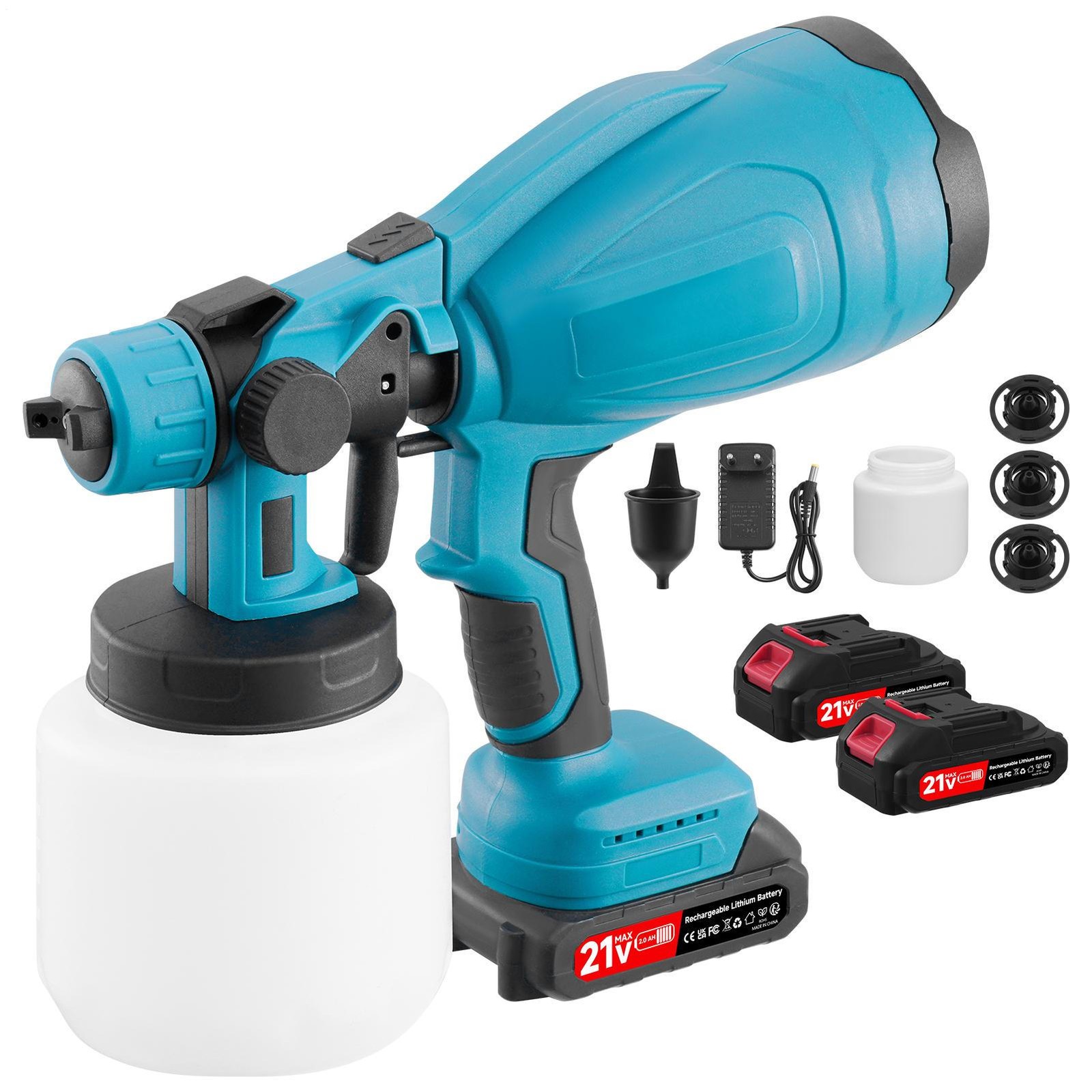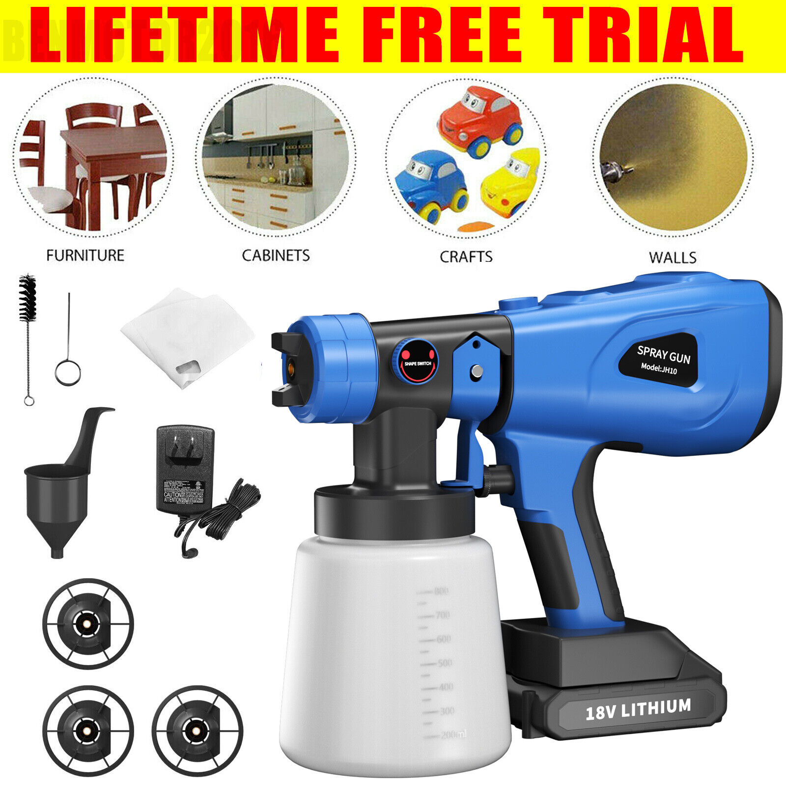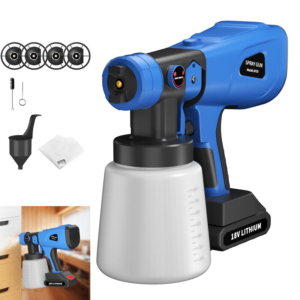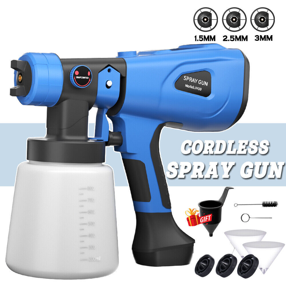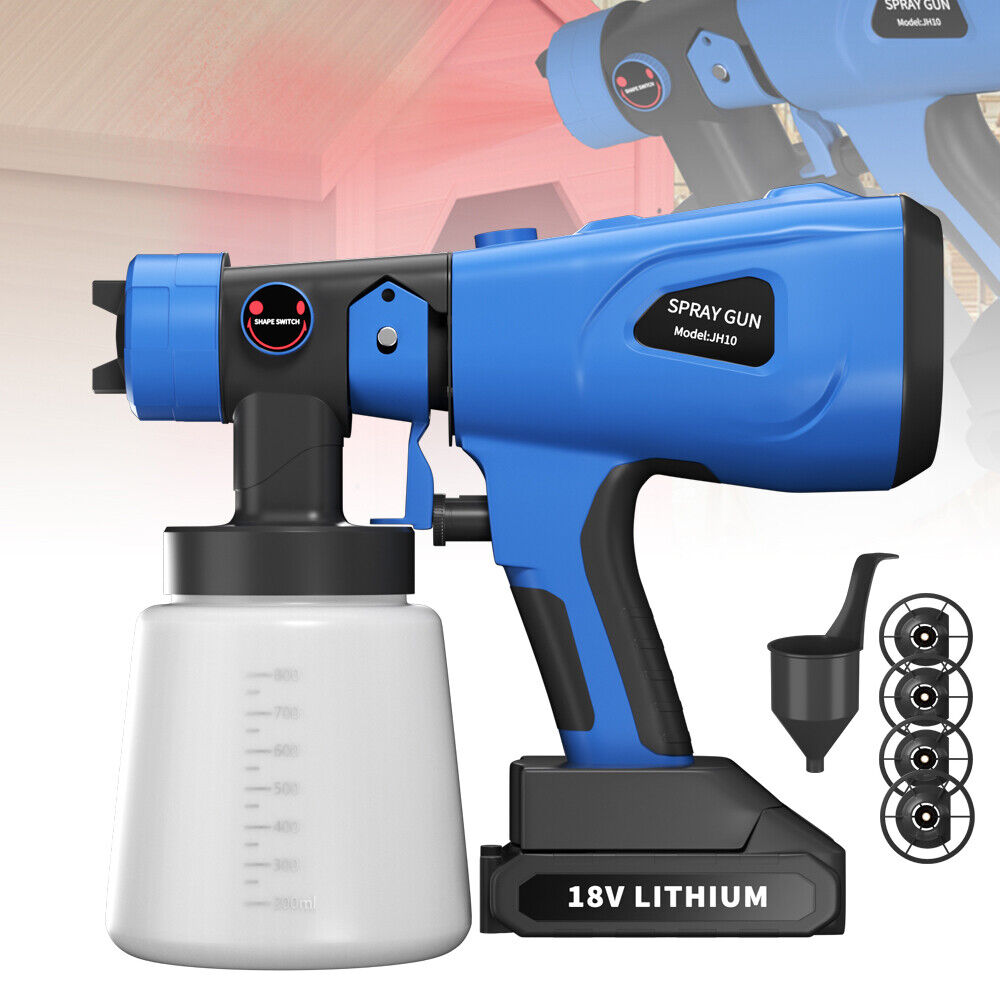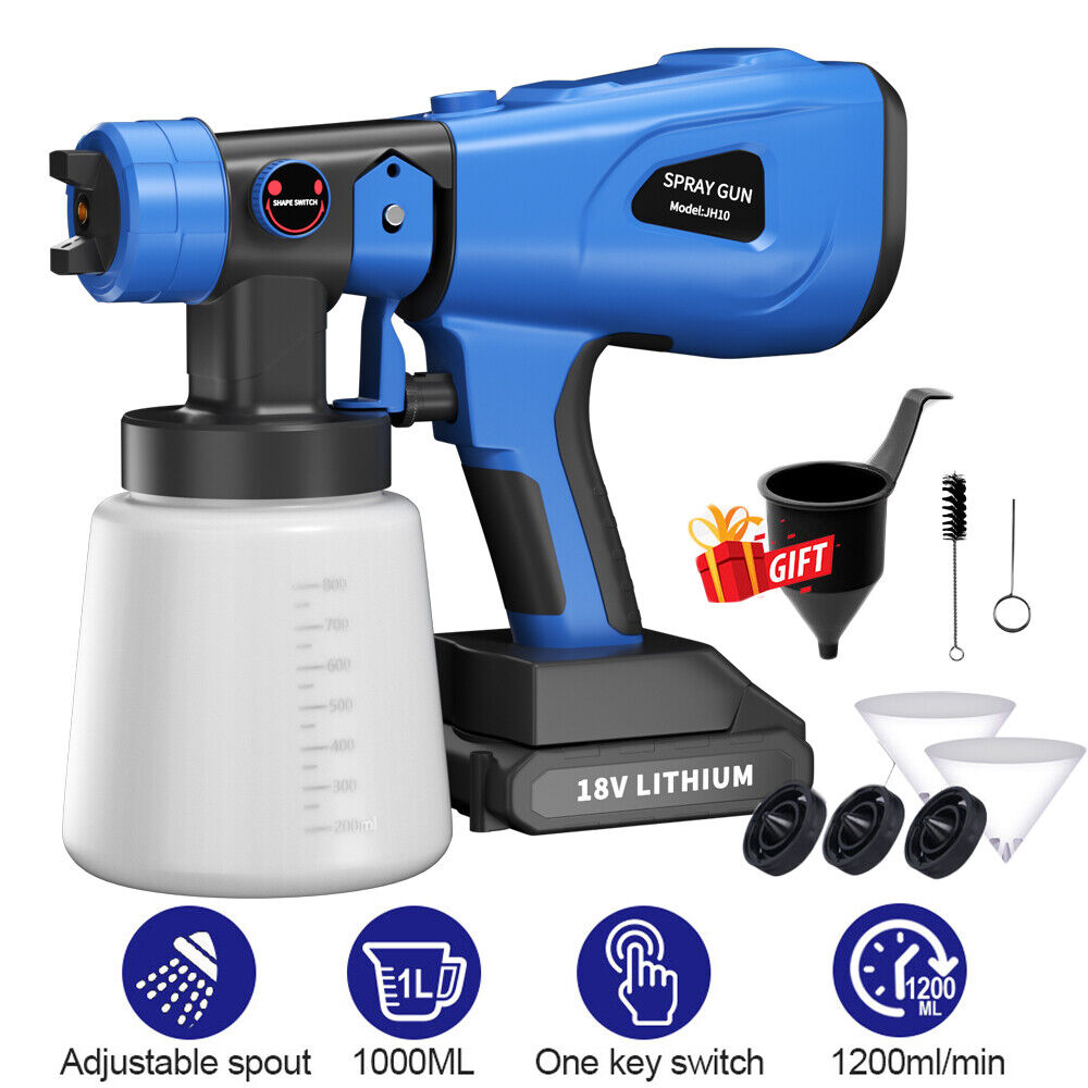 1000ML Spray Gun Cordless Fence Wall Paint Sprayer Electric Airless HVLP+4Nozzle