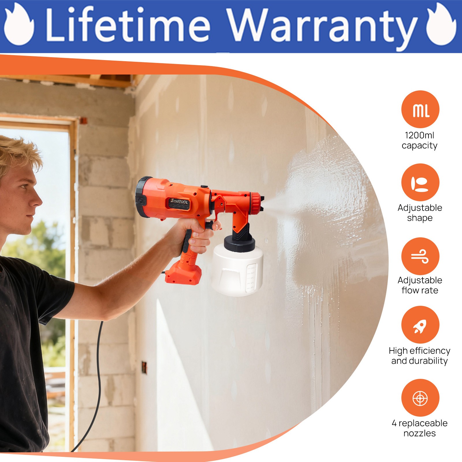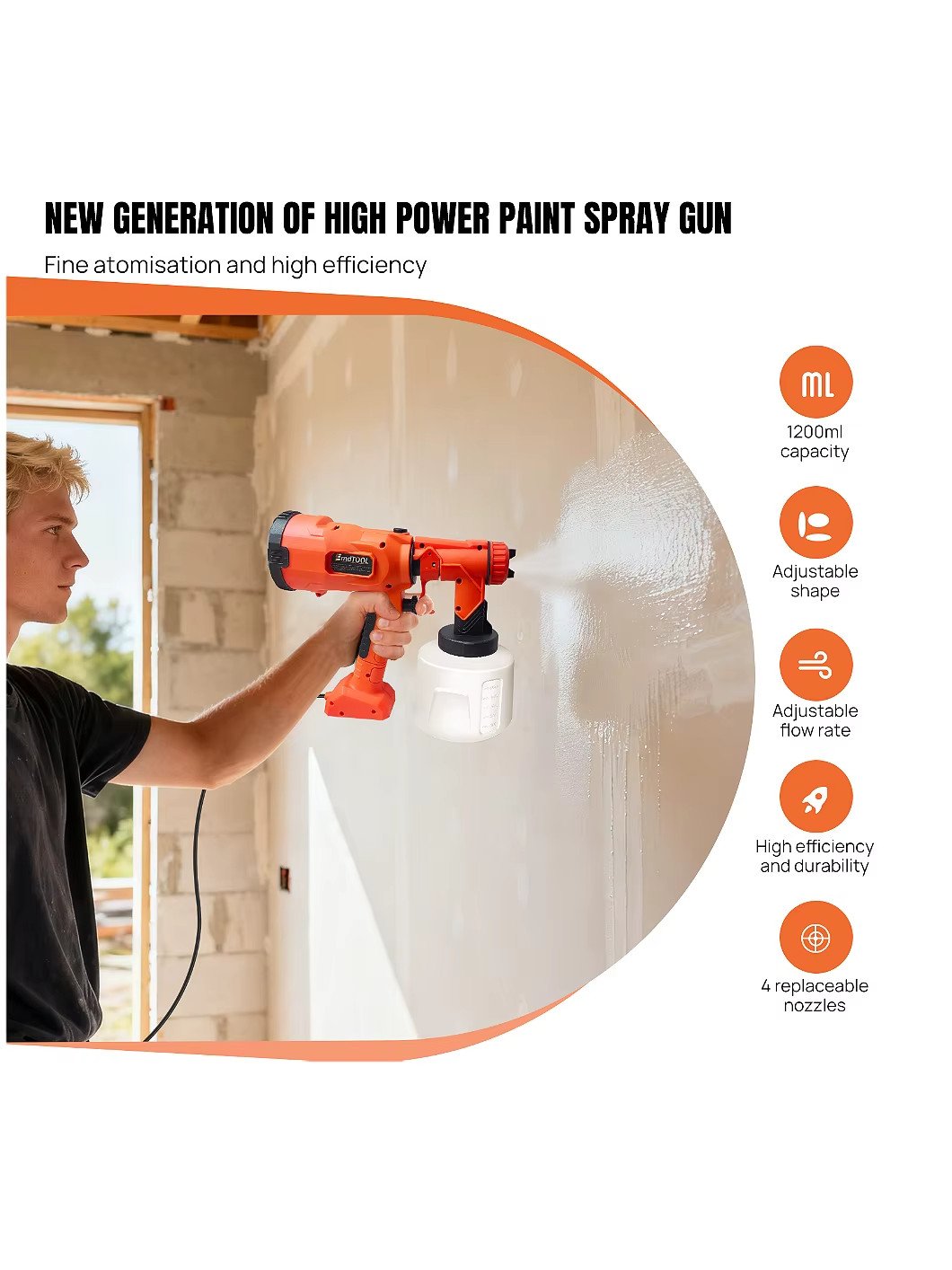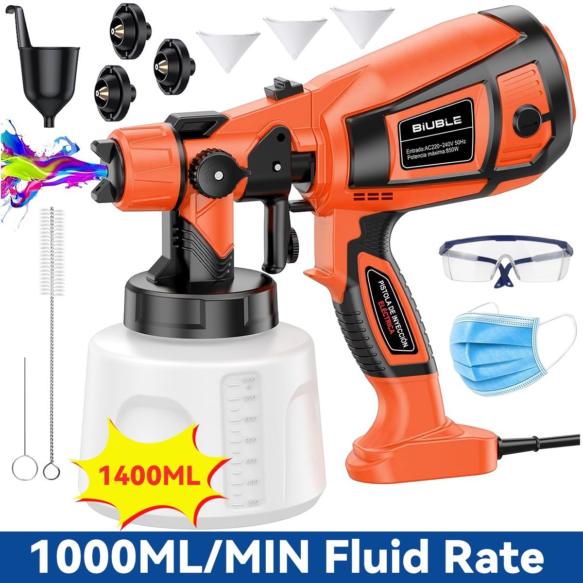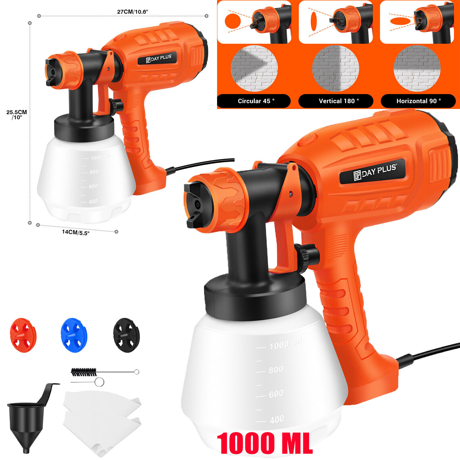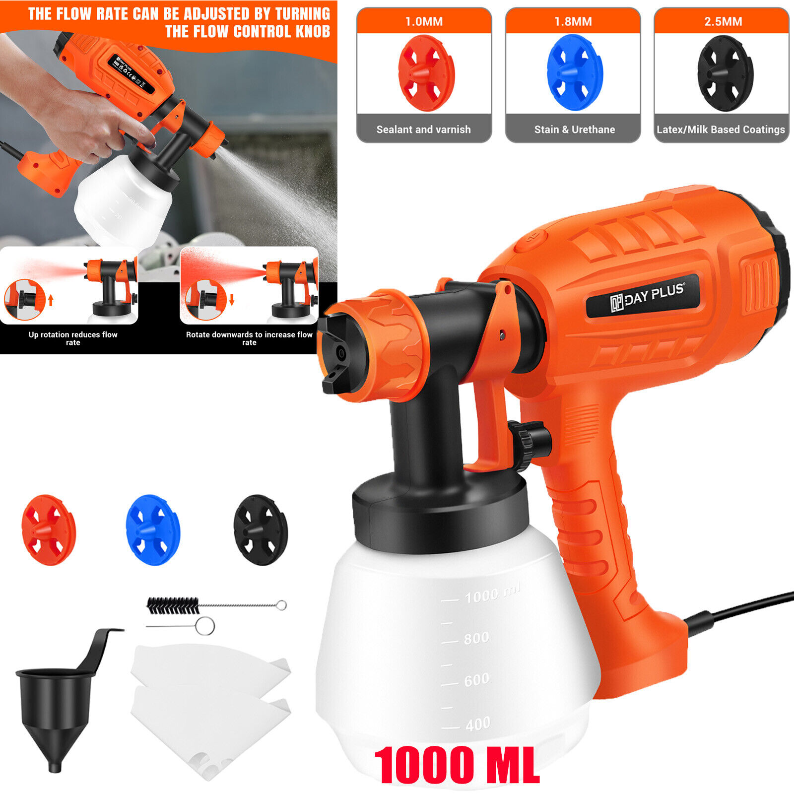 1000ML 1000W Electric Paint Sprayer Spray Painting Gun For Fence Wall Furniture 3 Spray Patterns Adjustable Flow HVLP Electric Spray Gun