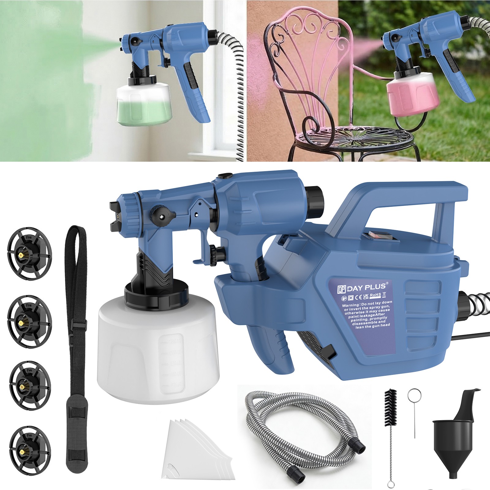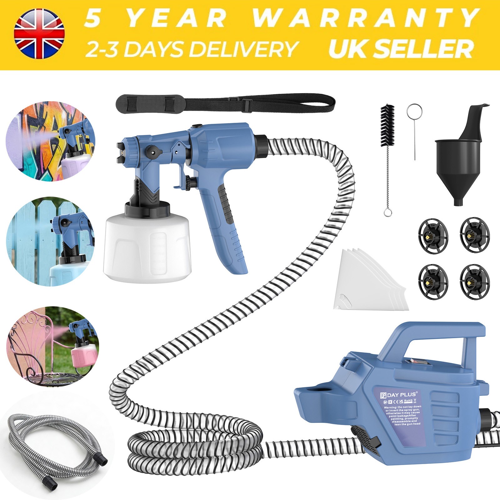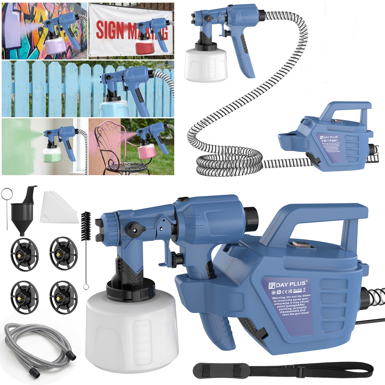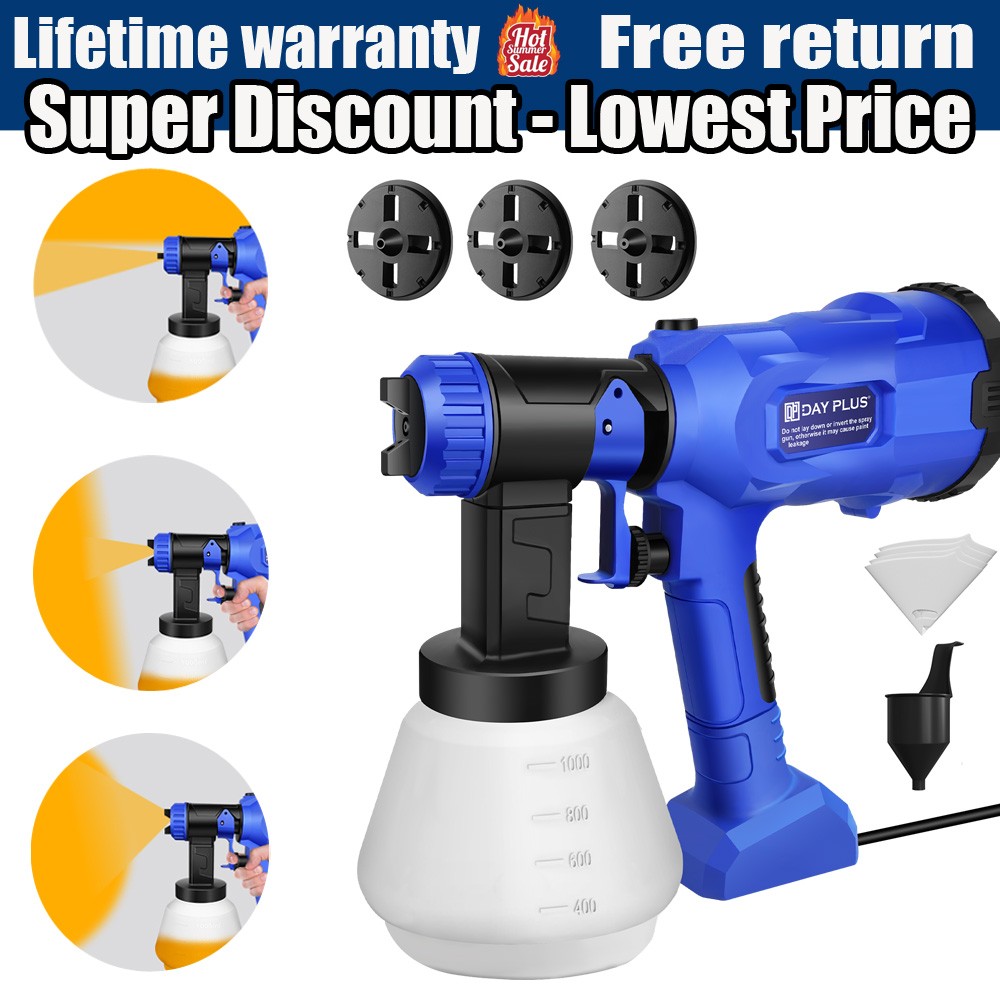 DAYPLUS Electric Paint Spray Gun Fence Brick Walls Industrial Home 3 Nozzles