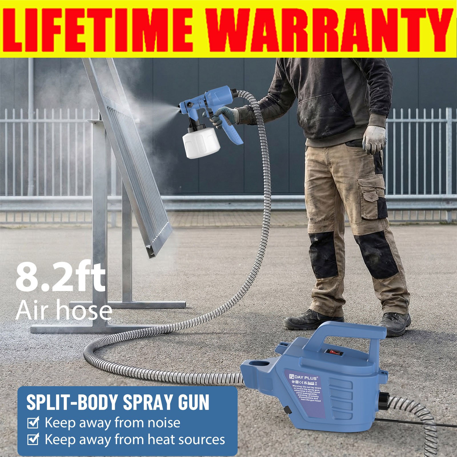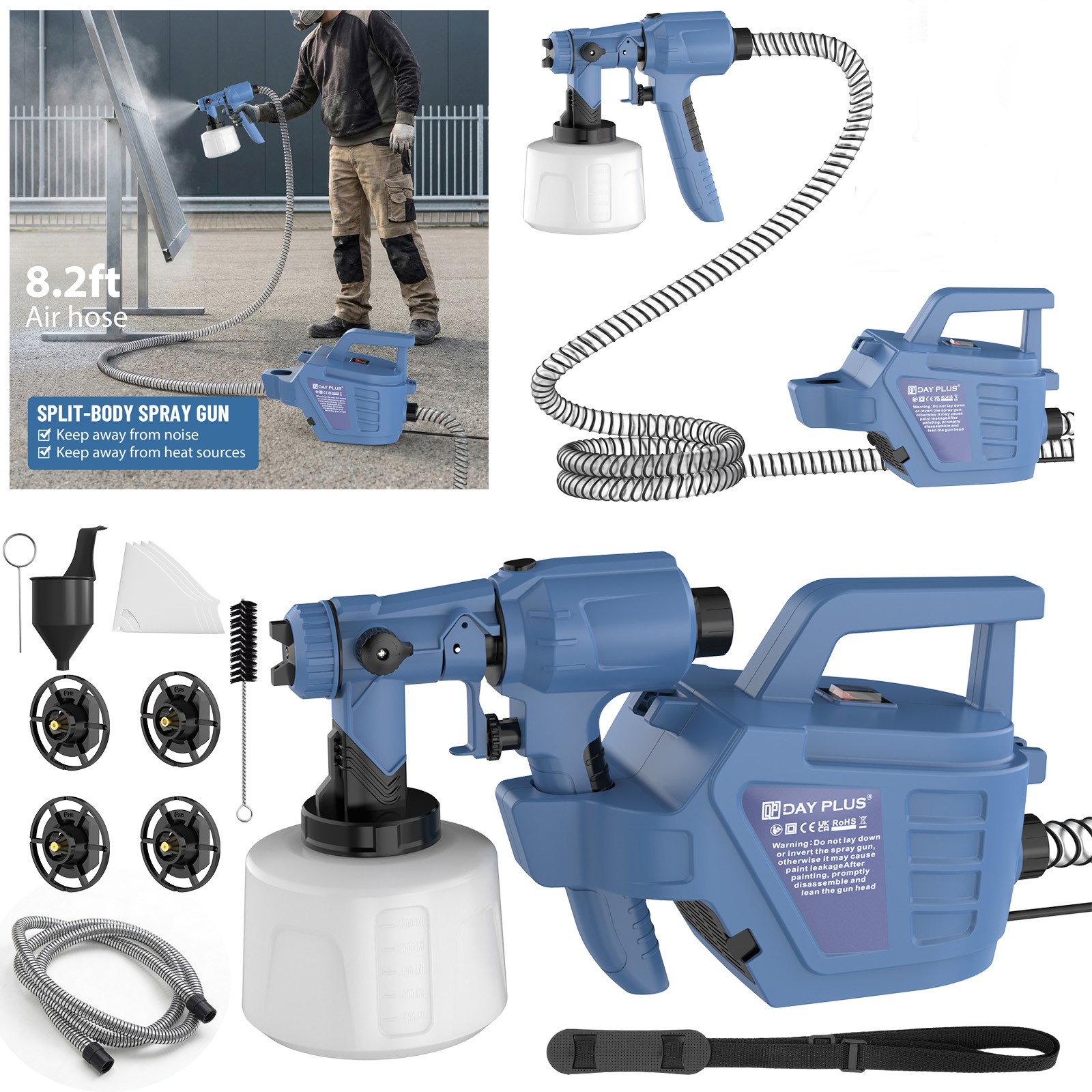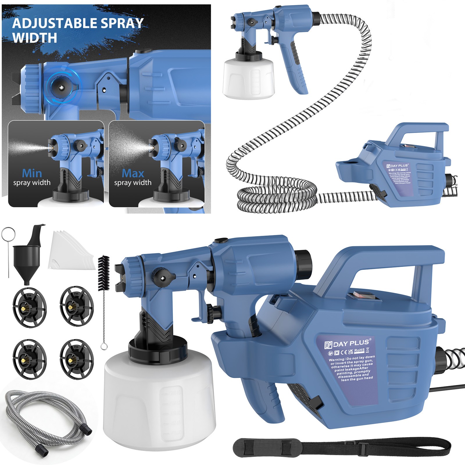 DAYPLUS Electric Paint Spray Gun Fence Brick Walls Industrial Home 3 Nozzles