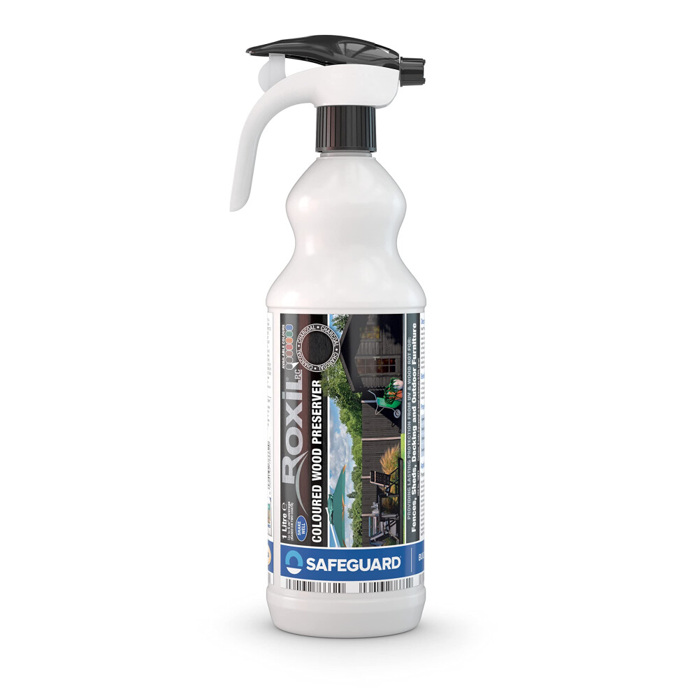 Roxil Wood Stain Preserver (Charcoal, 1L Spray) for Decking, Fence, Shed, Furniture. Up to 5 Year Protection for Indoor & Outdoor