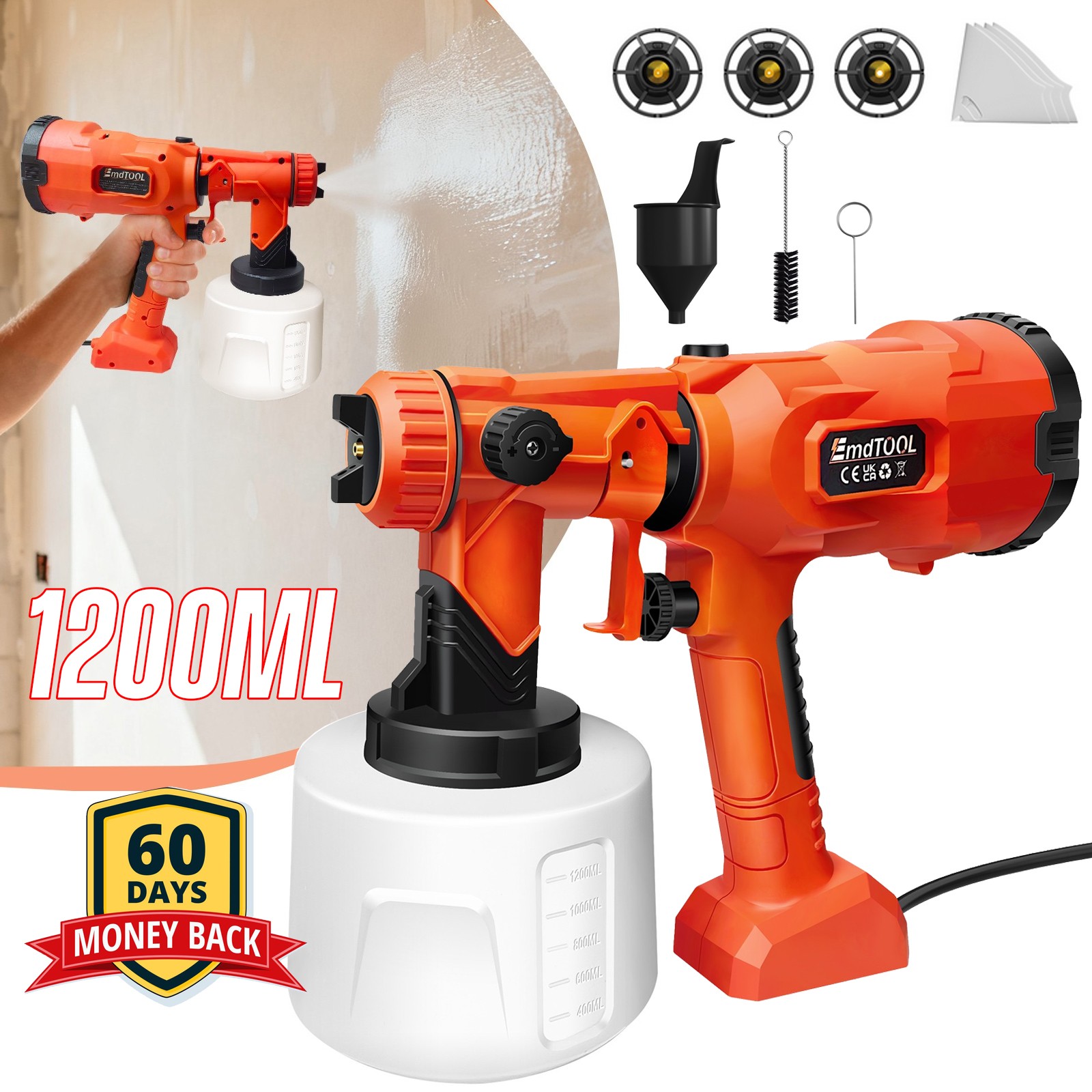 1200ML 1000W Electric Paint Sprayer Spray Painting Gun For Fence Wall Furniture