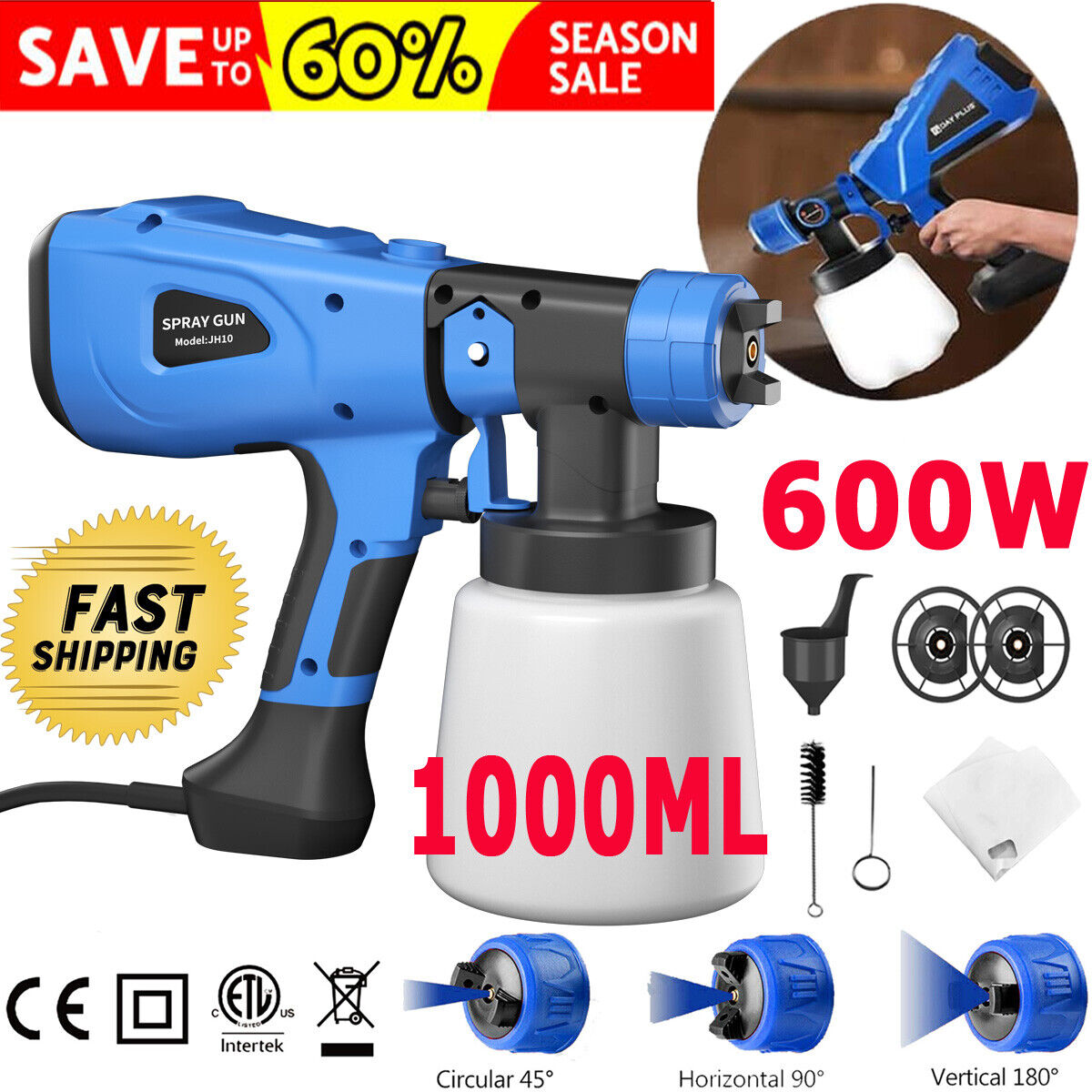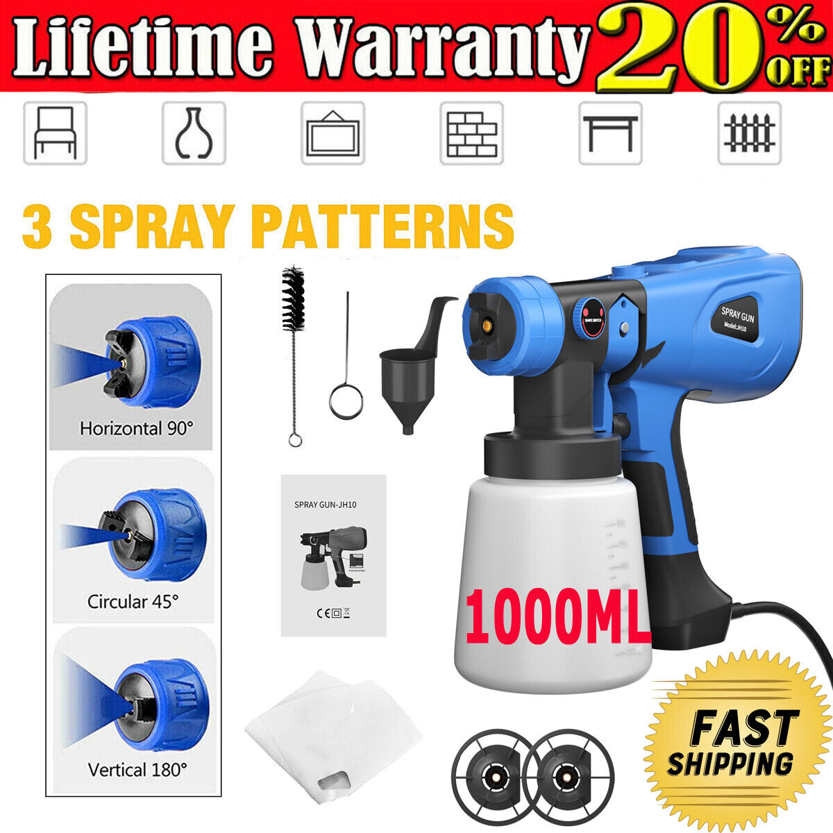 NEW Electric Spray Gun 1000ML Fence Brick Walls Home Painting Tool Paint Sprayer