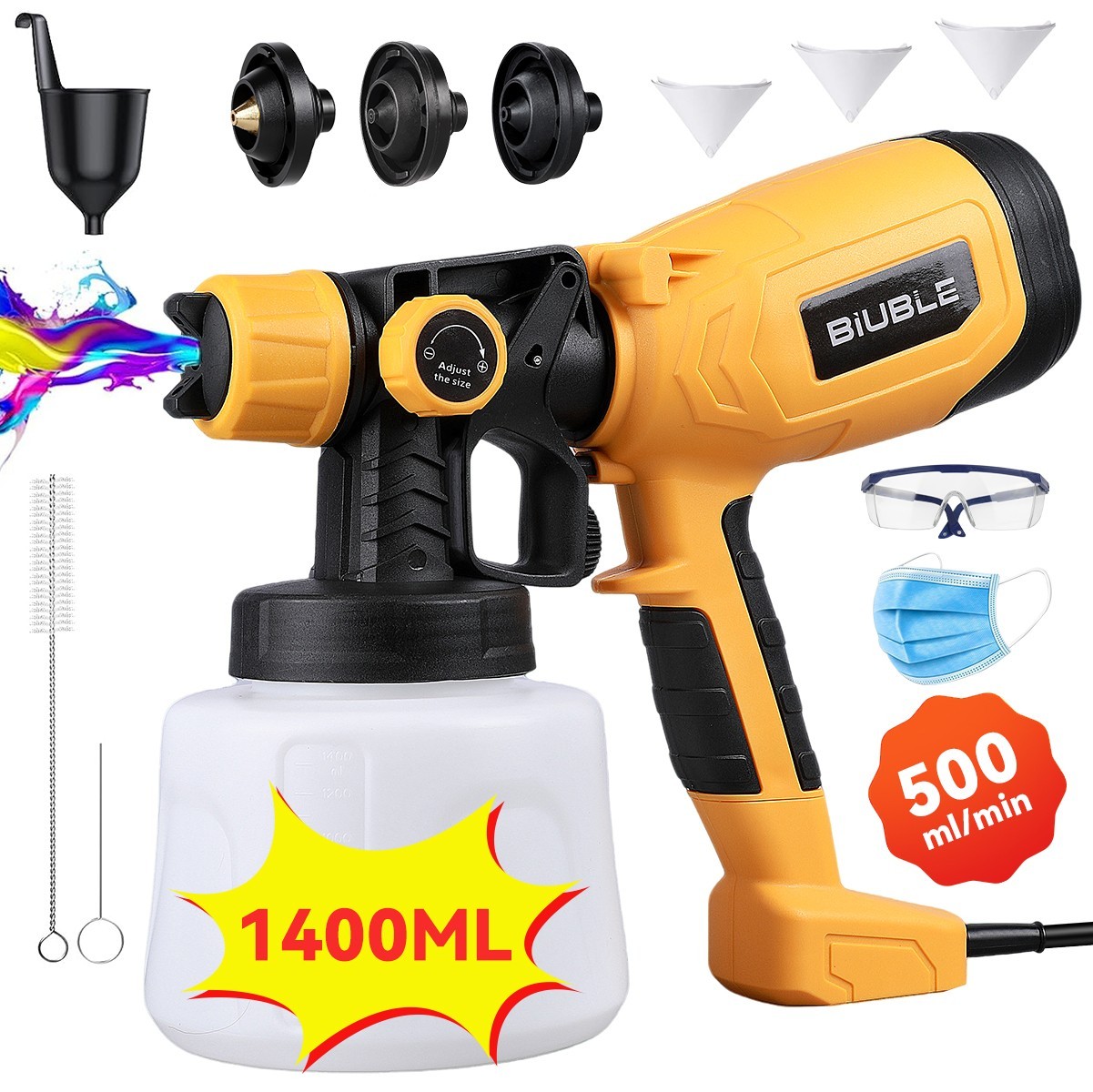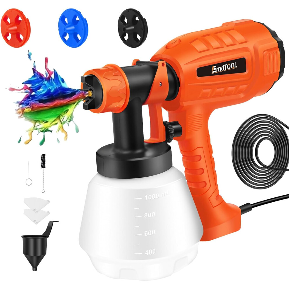 Paint Sprayer,1000ml DIY Electric Spray Gun for Wall & Fence, with 3 Spray Modes, Detachable Container and Adjustable Valve Knob for Painting Projects