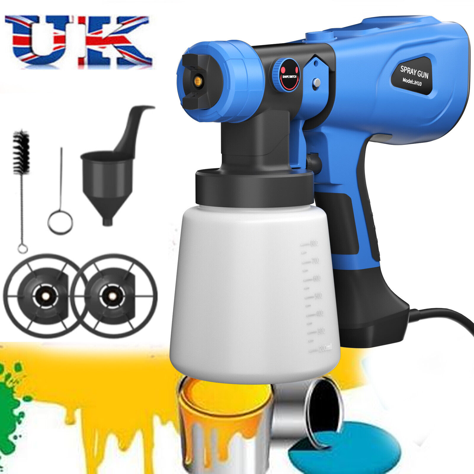 230V 1000ML Electric Spray Gun Corded Fence Wall Paint Sprayer HVLP Airless UK