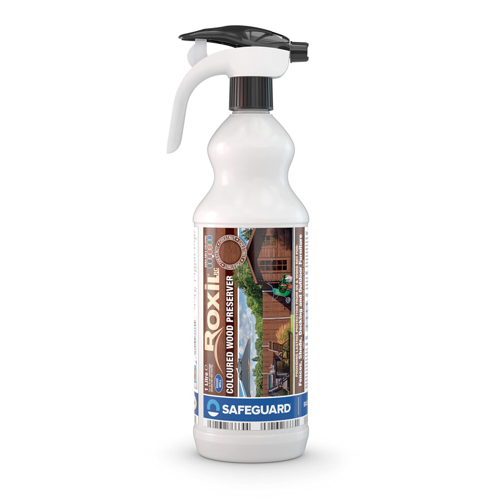 Roxil Wood Stain Preserver (Chestnut, 1L Spray) for Decking, Fence, Shed, Furniture. Up to 5 Year Protection for Indoor & Outdoor