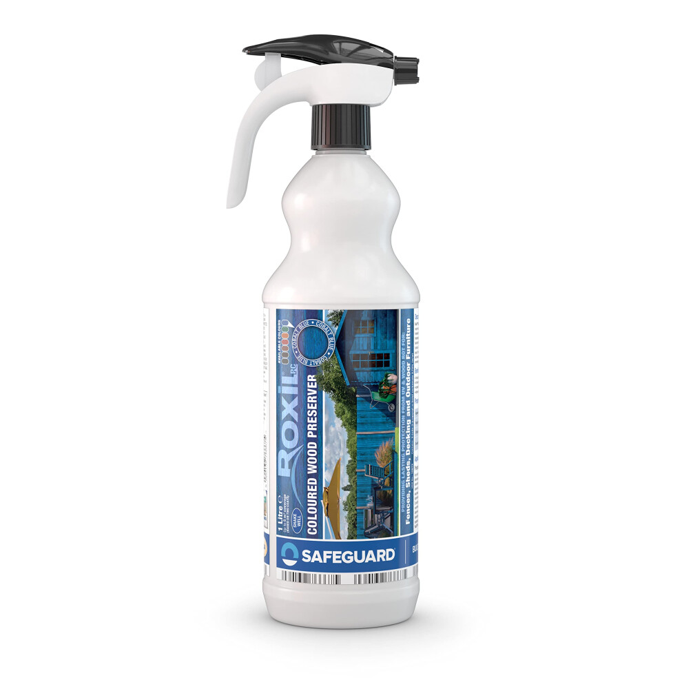 Roxil Wood Stain Preserver (Cobalt Blue, 1L Spray) for Decking, Fence, Shed, Furniture. Up to 5 Year Protection for Indoor & Outdoor