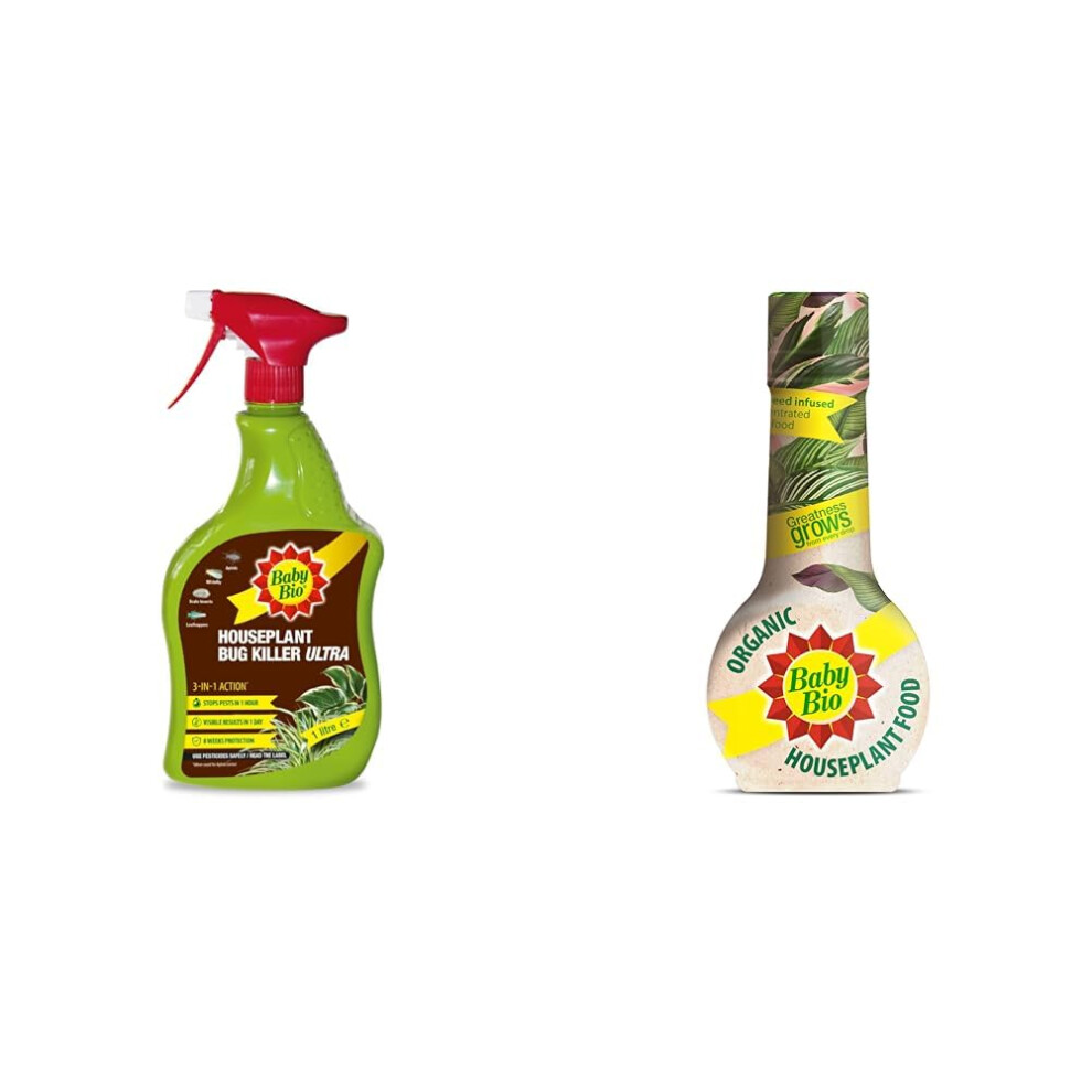 Baby Bio Houseplant Bug Killer Ultra - Fast-Acting Bug Killer Spray - Effective Insect Control Houseplants, 1 Litre & Organic Houseplant Food, 175ml
