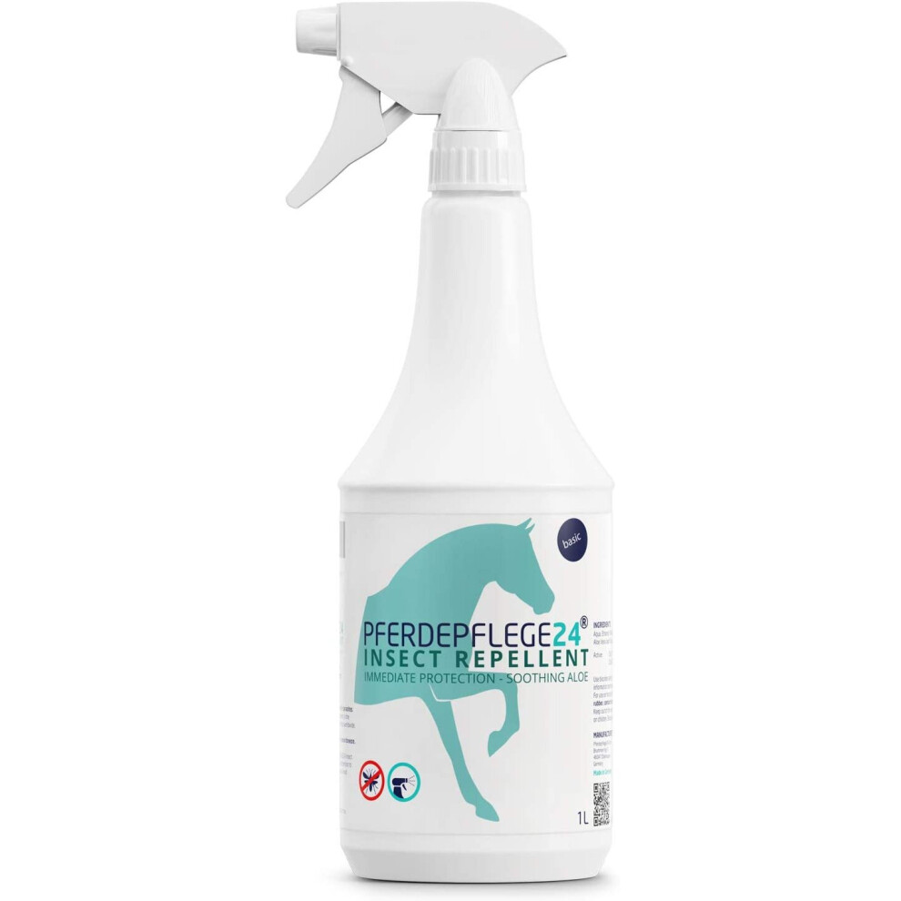 PFERDEPFLEGE24 Horse fly spray & insect repellent spray for immediate & Long-lasting protection with soothing aloe vera & DEET - 0.5l, 1l & 2.5l -