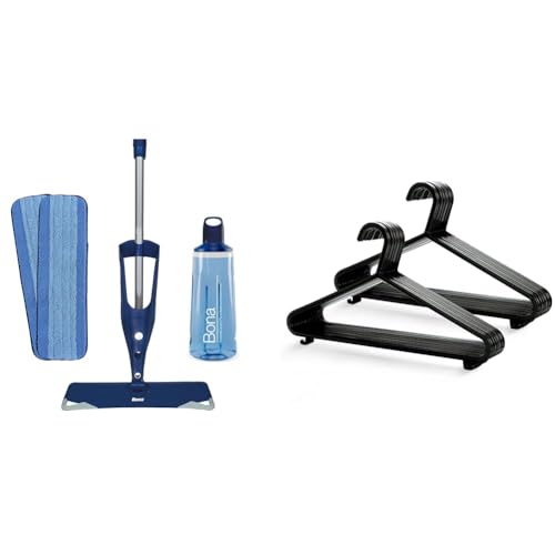 Bona Premium Spray Mops for Floors, Wood, Bona Floor Mops for Cleaning Floors & KEPLIN Adult Plastic Coat Hangers - 25pk, Black Colour, Strong Clothes Hangers for Clothes Rail