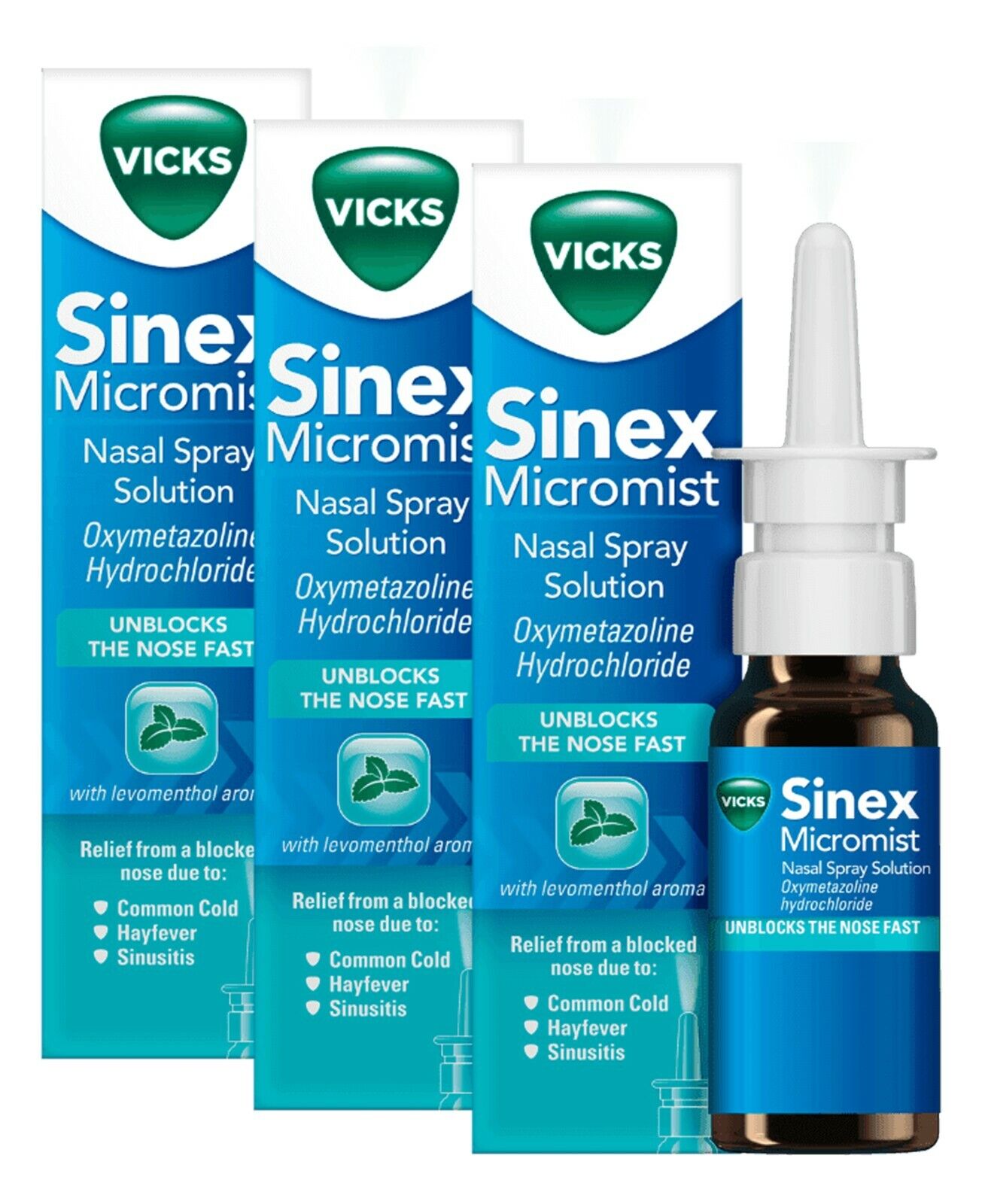 3 x Vicks Sinex Micromist Aqueous Nasal Spray Solution 15ml