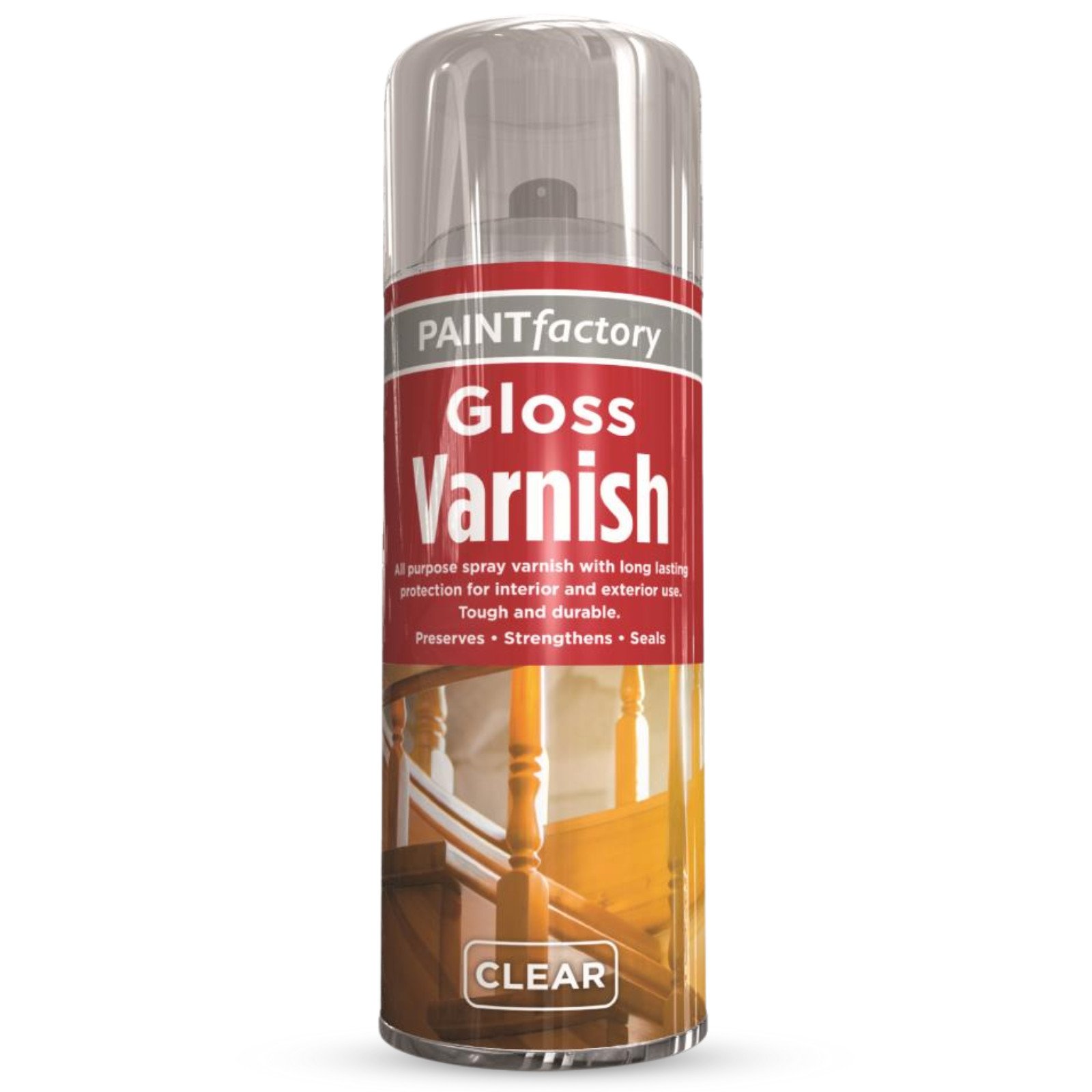Paint Factory Clear Gloss Varnish Spray Exterior Interior Aerosol Can 250ml All Purpose (1 Pack)