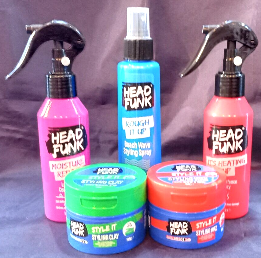 ABOXOV® 5 x HEADFUNK Hair Styling Gel Wax Clay, Beach Wave Spray + Repair