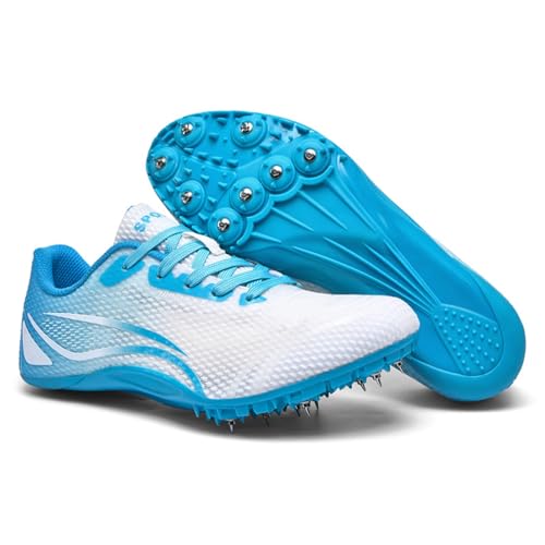 ZHENSI Track and Field Shoes Mens Womens Spikes Sprint Shoes Breathable for Running Racing Jumping,Blue,9.5 UK