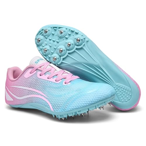 Dwihuize Women's Track and Field Shoes Sprint Racing Shoes Spikes Running Jumping Shoes for Students Boys Girls,Pink B,6 UK