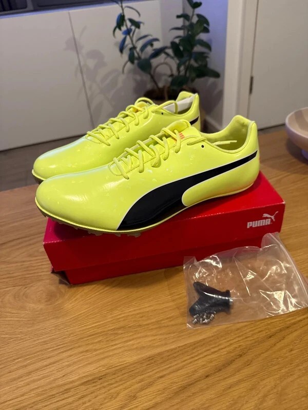 Puma evoSpeed Prep Sprint Running Spikes Yellow Athletics Track Racing PB Shoes