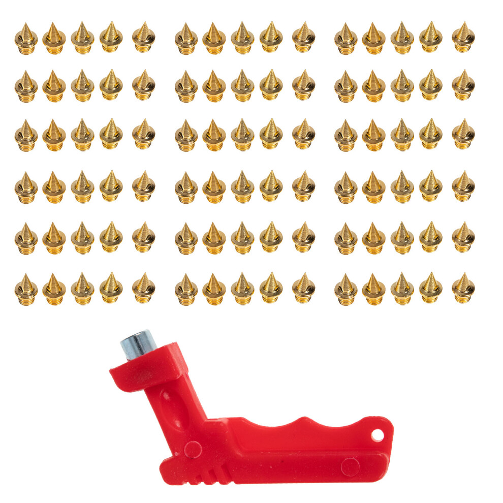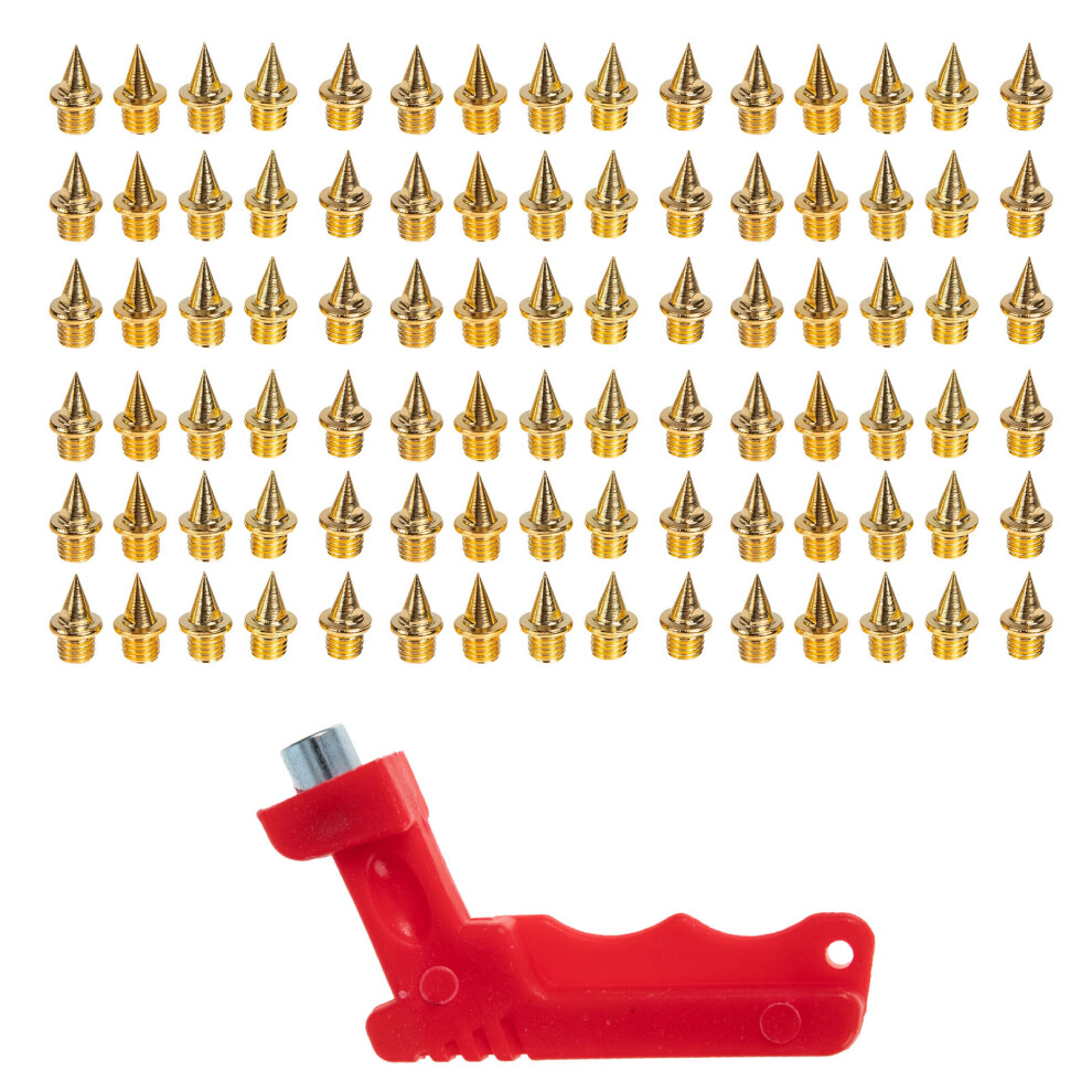JULMELON 120PCS 1/4inch Stainless Steel Track and Cross Country Spikes Golf Shoe Spikes with Spike Wrench, Replacement Spikes for Sprint Sports Short Running Track Shoes (Gold)