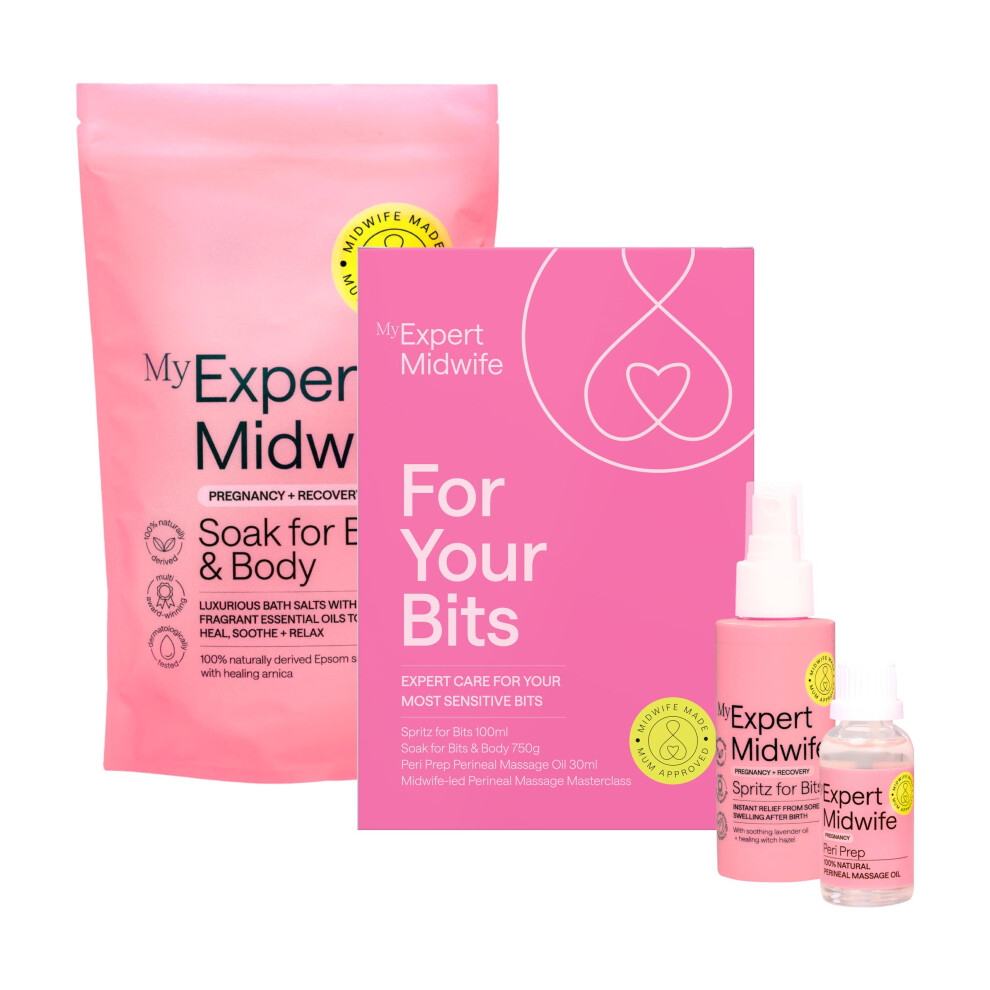 My Expert Midwife For Your Bits Gift Set, Prep & Post-Birth Recovery Care for Your Perineum, with Spritz for Bits Postnatal Relief Spray, Peri Prep