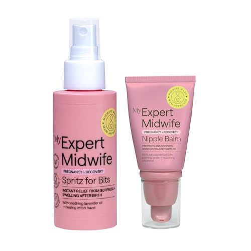 My Expert Midwife Bits and Nips - Birth Prep & Recovery Duo with Spritz for Bits Postnatal Relief Perineal Spray and No Harm Nipple Balm Nipple Cream