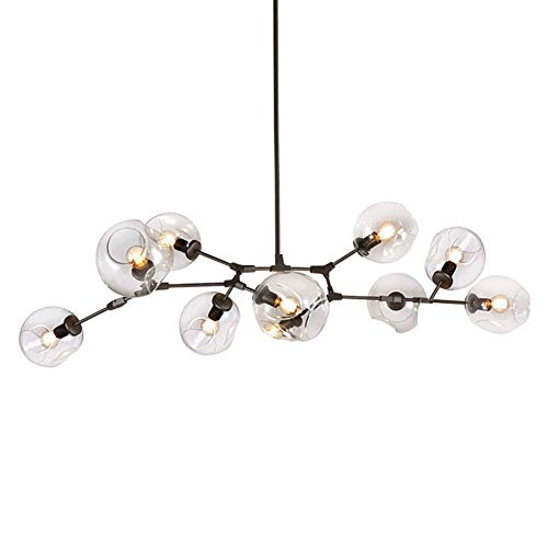 MMRTDJDR Glass Chandelier,9-Lights Sputnik Chandelier Industrial Black Branches Pendant Light 360° Adjustment Booms Ceiling Fixture for Living Room-(Transparent Lampshade.,8 Lig