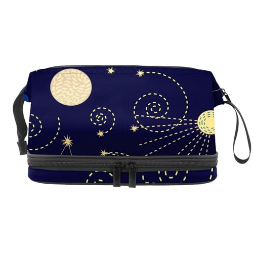 VAPOKF Abstract Geometric Zodiac Sky Constellations Moon Sputniks Cosmetic Bag for Women and Girls, Travel Toiletry Bag Makeup Handy Pouch Organizer Bag with Brush Compartment
