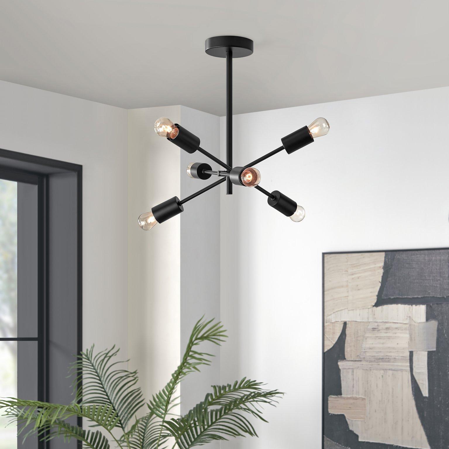 HWSY Sputnik Chandelier 6 Lights Modern Pendant Lighting Brass Ceiling Light Fixture Gold Chandeliers Mid-Century Ceiling Lamp For Kitchen Living Room Interesting