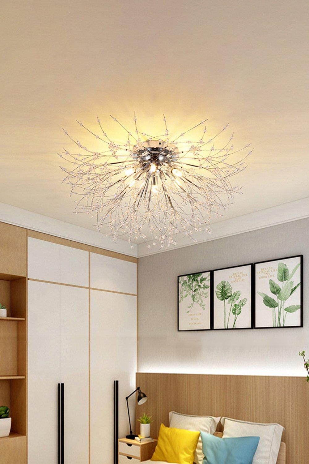 Sputnik Flush Mount Ceiling Light Fixture, 12-Lights Chrome Firework Ceiling Light, Modern Semi Ceiling Lamp Fixtures for Bedroom Living Room, D29.5 In/50Cm Household faucets