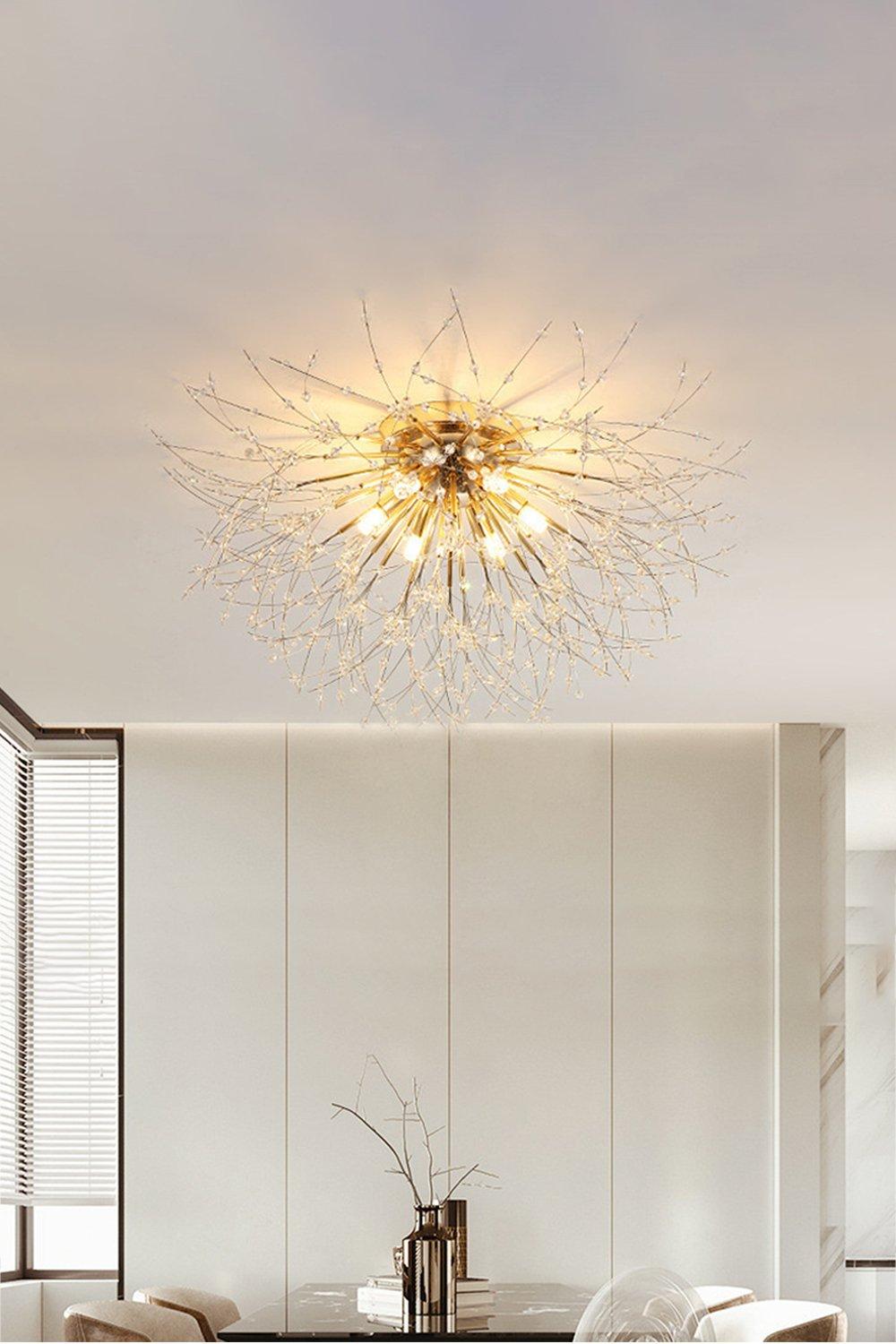 HWSY Crystal Firework Ceiling Light/Lamp Modern Sputnik Chandelier Lighting Fixtures Decoration Bedroom Living Dining Room Wrought Iron Flush Mount Ceiling Lamp,Electroplating Gold,80X32Cm(31X13Inch)