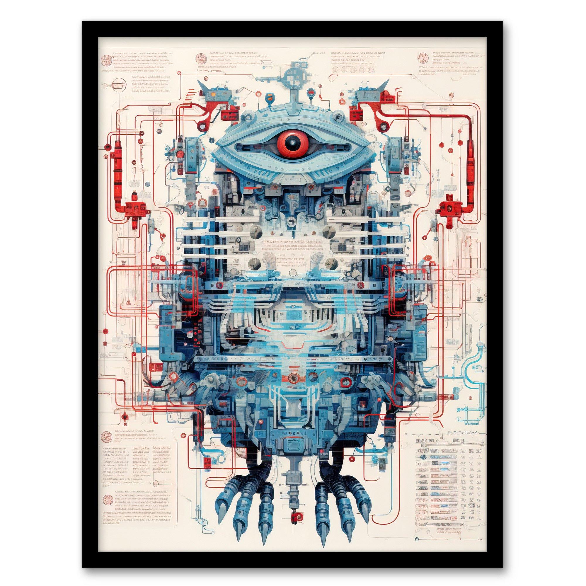 Bird Robot Hybrid Schematic Blueprint Futuristic Secret Spy Cam Complex Arcane Manuscript Gift For Him Man Cave Unframed Wall Art Print Poster Home De