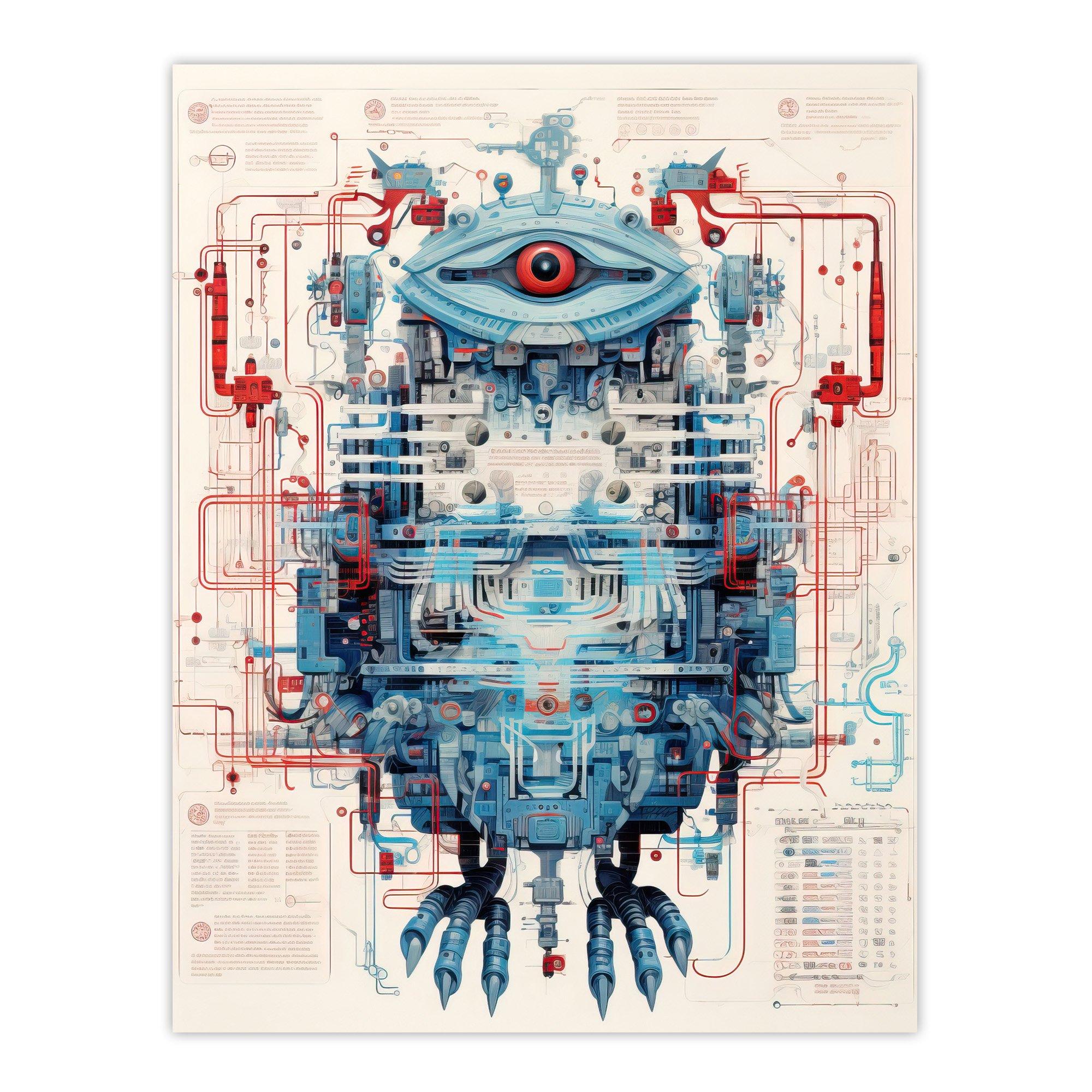 Bird Robot Hybrid Schematic Blueprint Futuristic Secret Spy Cam Complex Arcane Manuscript Gift For Him Man Cave Art Print Framed Poster Wall Decor