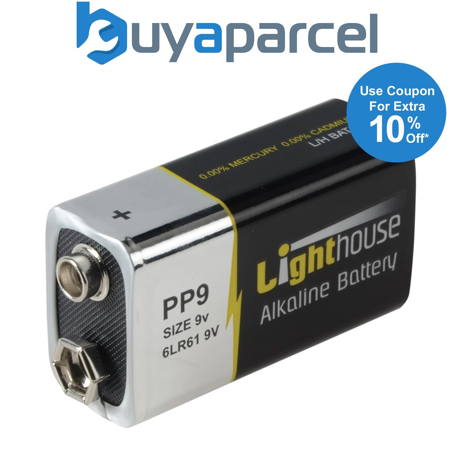Lighthouse 9v Alkaline Batteries LR61 1100 mAh Square Battery 6LR61 L/HBAT9V