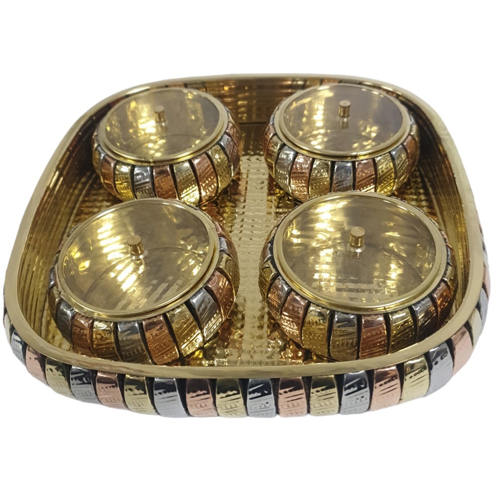 Multipurpose Brass Decorative Box Square Shape Pan Dan Dry Fruit Box with Glass