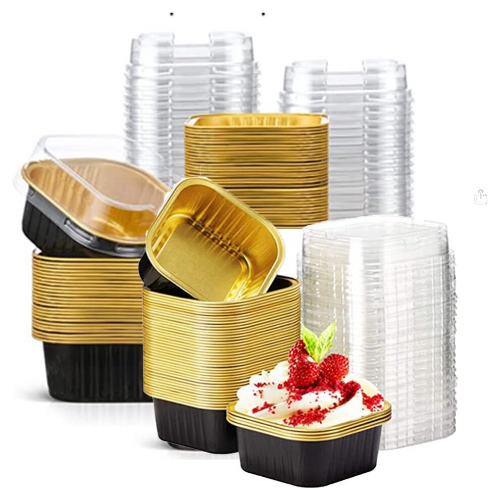 40PCS Square Mini Cake Pans with Lids Disposable aluminum foil Baking Cups Muffin Tins Cupcake Cups Wedding Birthday Party 10oz