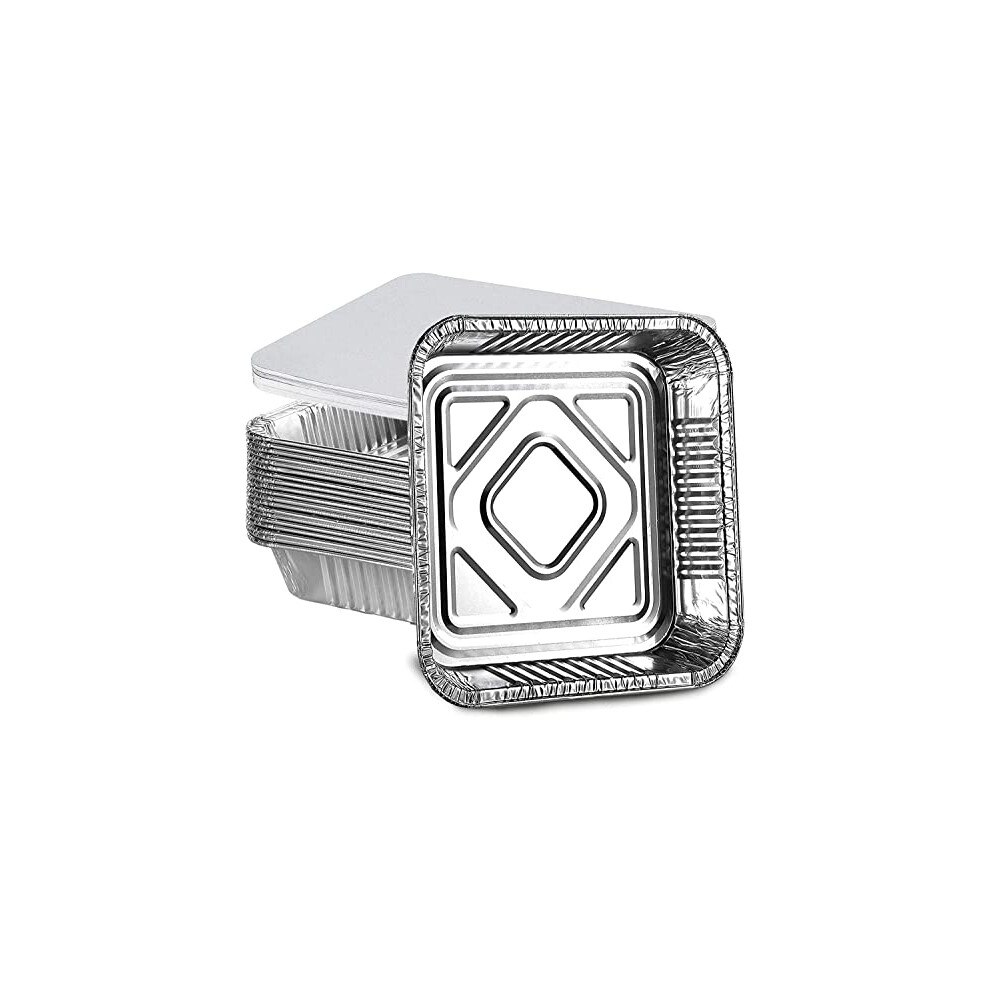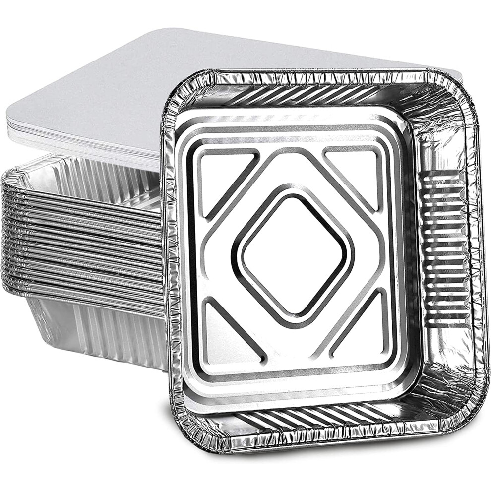 HighAtlas Pack of 20 Square Aluminium Foil Trays with Lids | Heavy Duty Baking Cake Pans | Disposable Tins Trays | Portable Food Containers | for