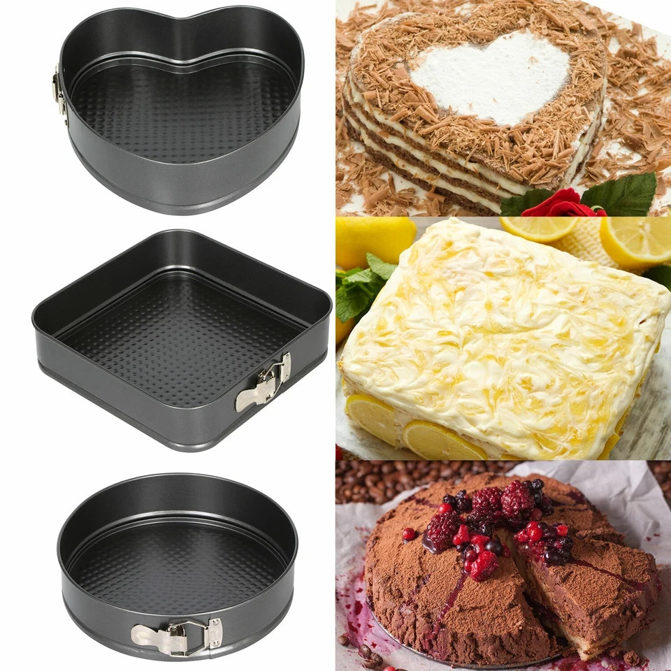 Cake Tins x3 Spring Form Shapes Square Round Heart Cake Baking Tray Bakeware
