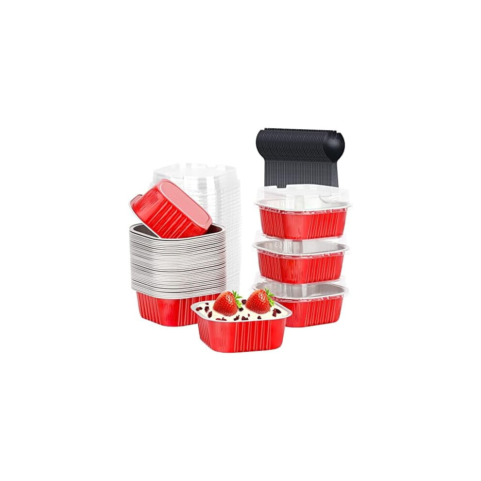 5oz Disposable Aluminum Cupcake Pans (40pc), with Lids, Square Brownie & Mini Cake Baking Pans â Compatible with Standard Muffin Tins â Red