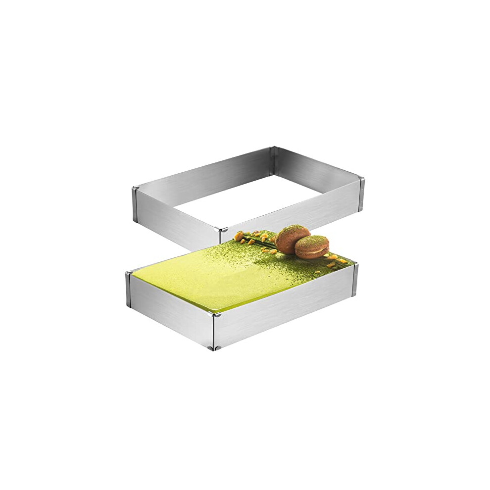 2 Pcs Square Baking Cake Tin, Adjustable Cake Tins Rectangular Mousse Cake Mould, Stainless Steel Cake Ring, for DIY Mousse Cake Dessert Pizza, 18 to