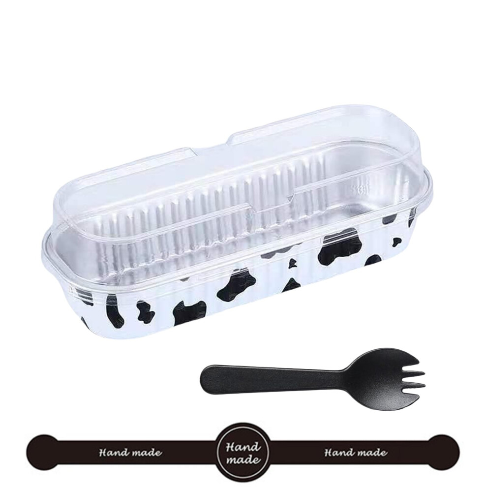 Aluminium Foil Baking Cups Pack of 50, 200ml Mini Cake Moulds with Lids, Black and White Square Brownie Tins and Spoons