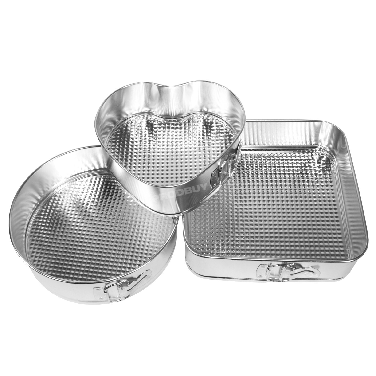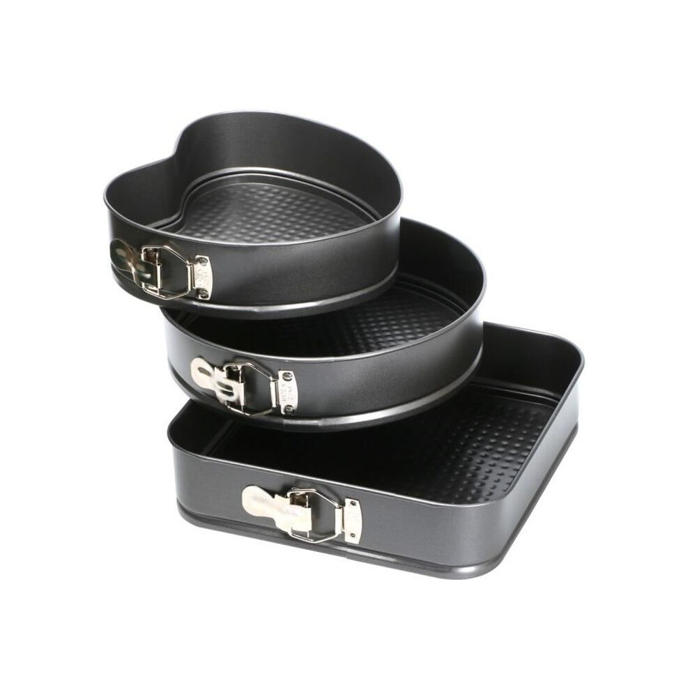Set of 3 Novelty Spring Form Cake Baking Tins Heart Round Square Moulds Oven