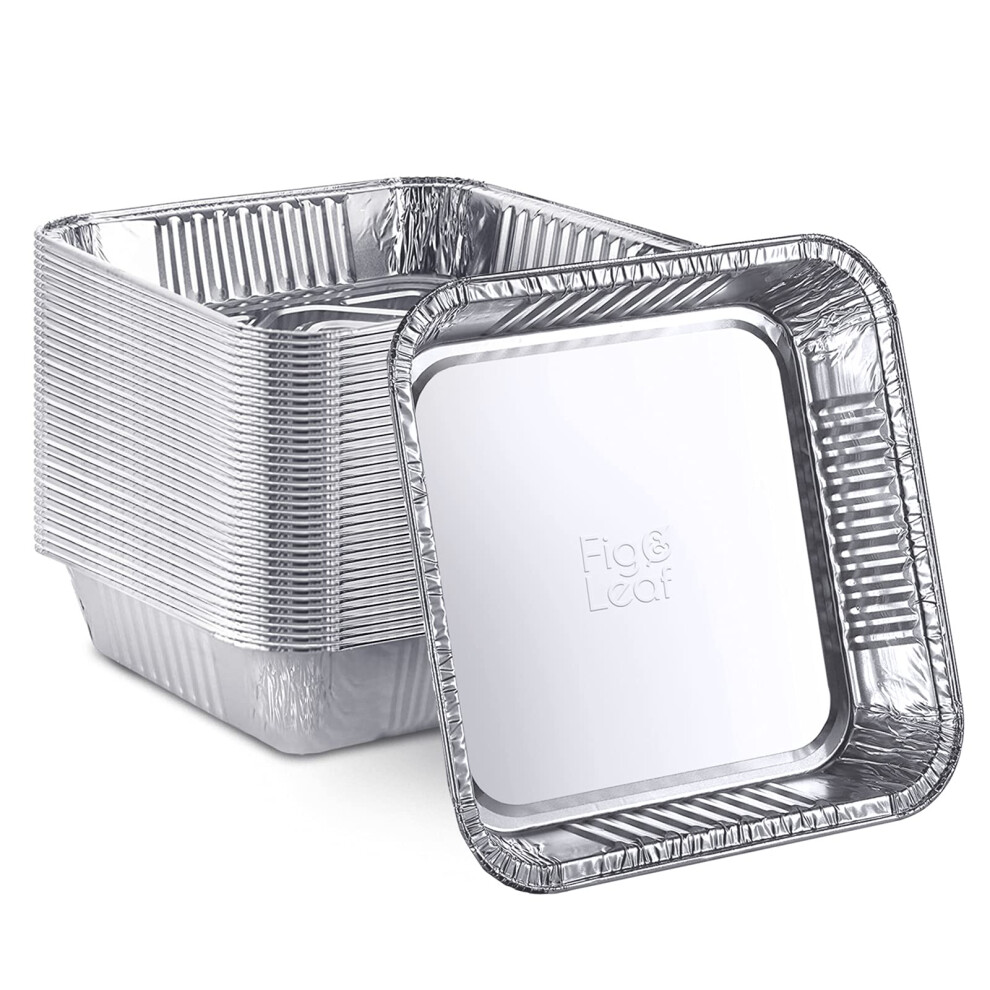 Fig & Leaf (20 Pack) 7 x 7 Square Baking Cake Pans| Disposable Aluminum Foil Tins l Portable Food Containers l Perfect for Roasting Toaster Oven Bro