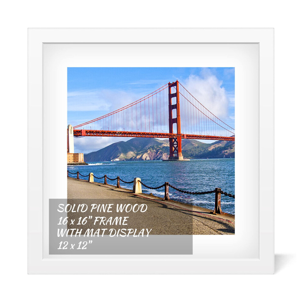 POUYCIW 16x16 inch Wood Picture Frame for Wall Hanging Square Photo Frames with Mats 12x12 inch Pictures for Baby Scan Poster Decoration Anniversary W