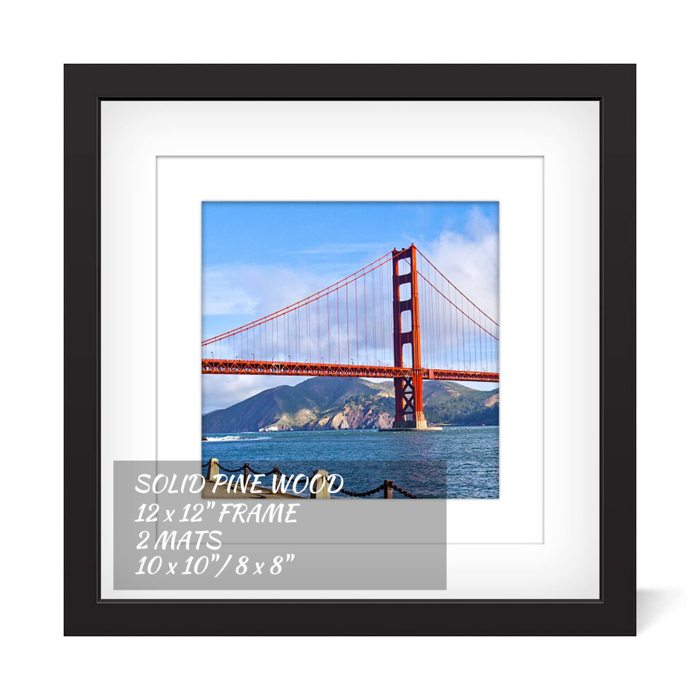 12x12 inch Wood Picture Frame for Wall Hanging Square Photo Frames with 2 Mats 8x8 inch and 10x10 inch Pictures for Baby Scan Poster Decoration Annive